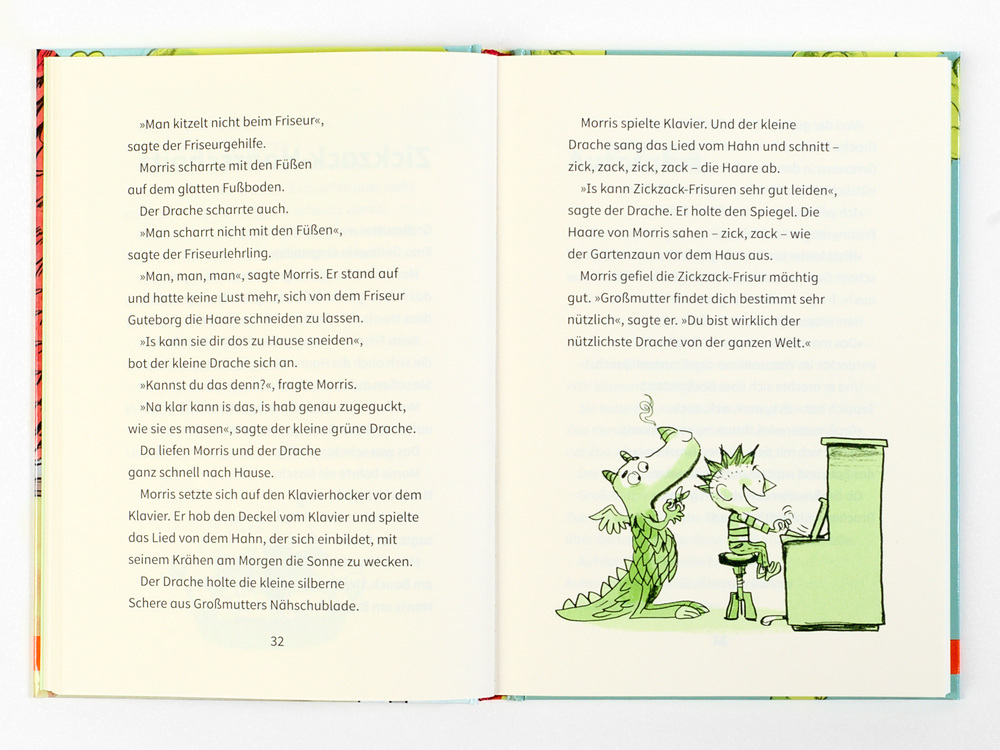 Eines Tages sitzt er auf dem Dach, der kleine grüne Drache, der zwar grünen Qualm speien, aber kein »ch« sprechen kann. In Morris findet er schnell einen Freund. Doch die Oma kommt den beiden in die Quere, denn sie duldet nur Gäste, die auch helfen. Und so wil...