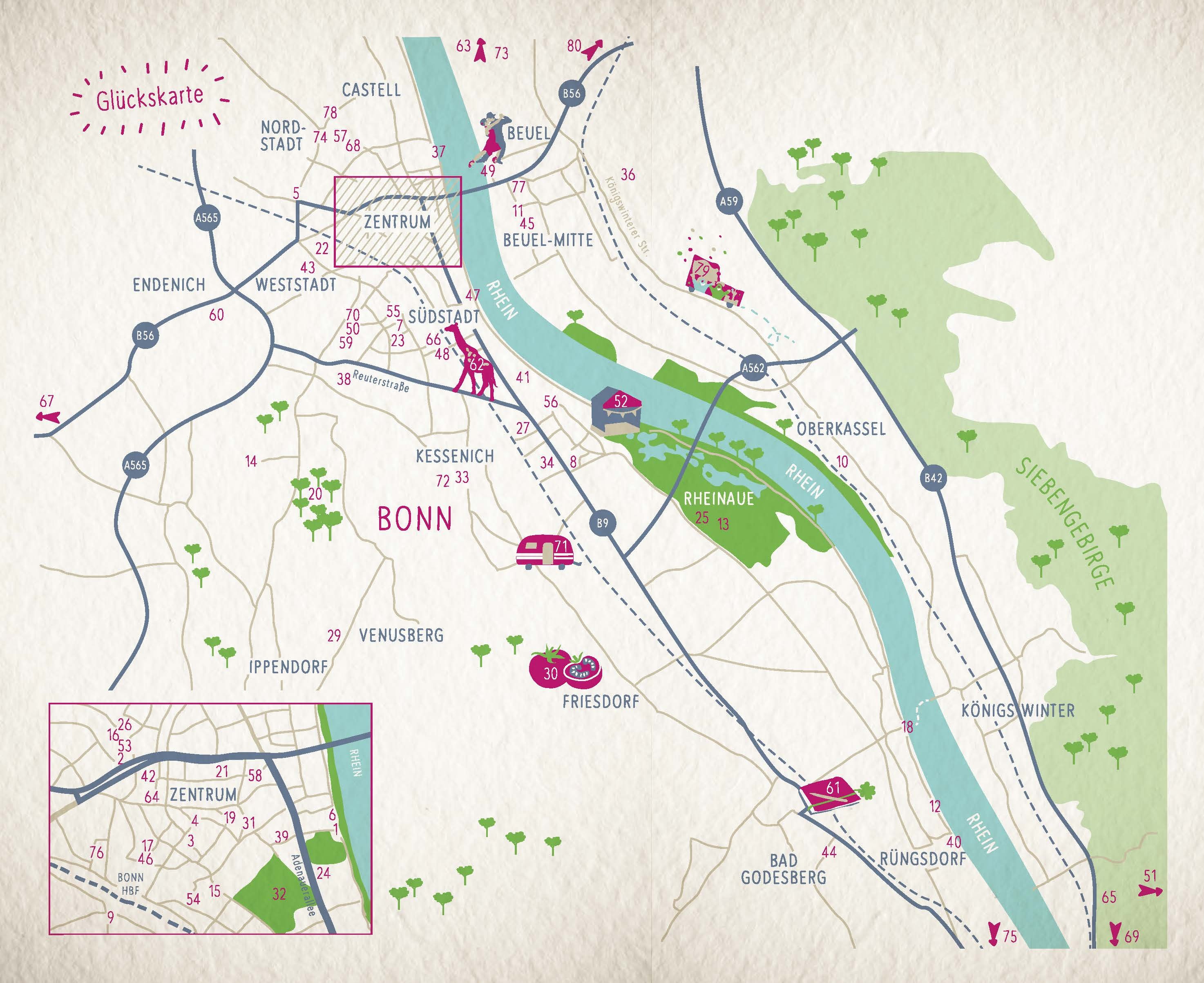 Bonn ist ein Verwandlungswunder: Hauptstadt, Bundesstadt, UN-Stadt, Studentenstadt - und sie steckt voller Glücksorte. 80 davon hat Ursula Kollritsch gefunden. Hier kann man der Kunst aufs Dach steigen, übers Wasser schweben, in einer Telefonzelle lesen, mit d...