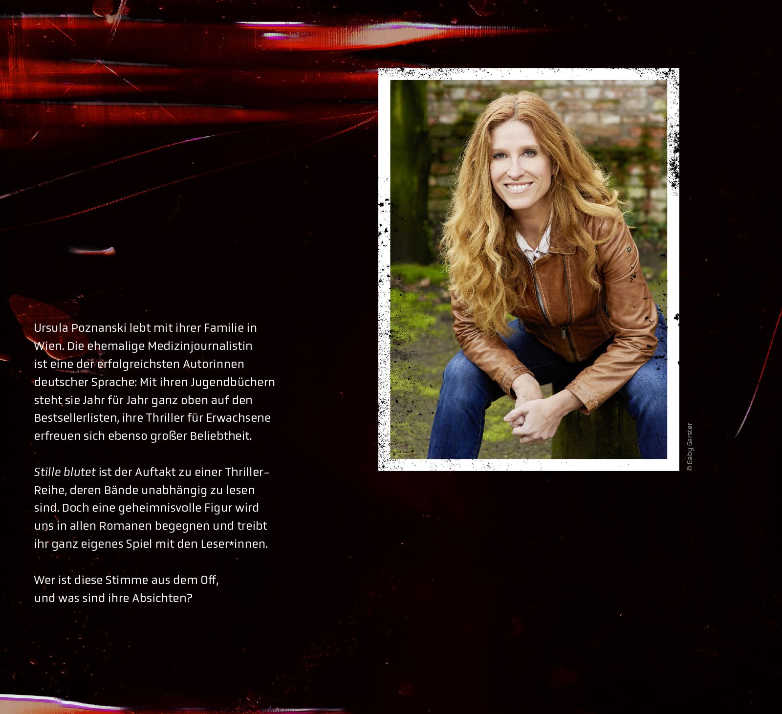 Nachrichtensprecherin kündigt ihre eigene Ermordung öffentlich an! Bestseller-Autorin Ursula Poznanski sorgt in ihrem Thriller »Stille blutet« mit einer bizarren Mord-Serie für Gänsehaut und eine geheimnisvolle Erzähler-Figur treibt ihr ganz eigenes Spiel mit...
