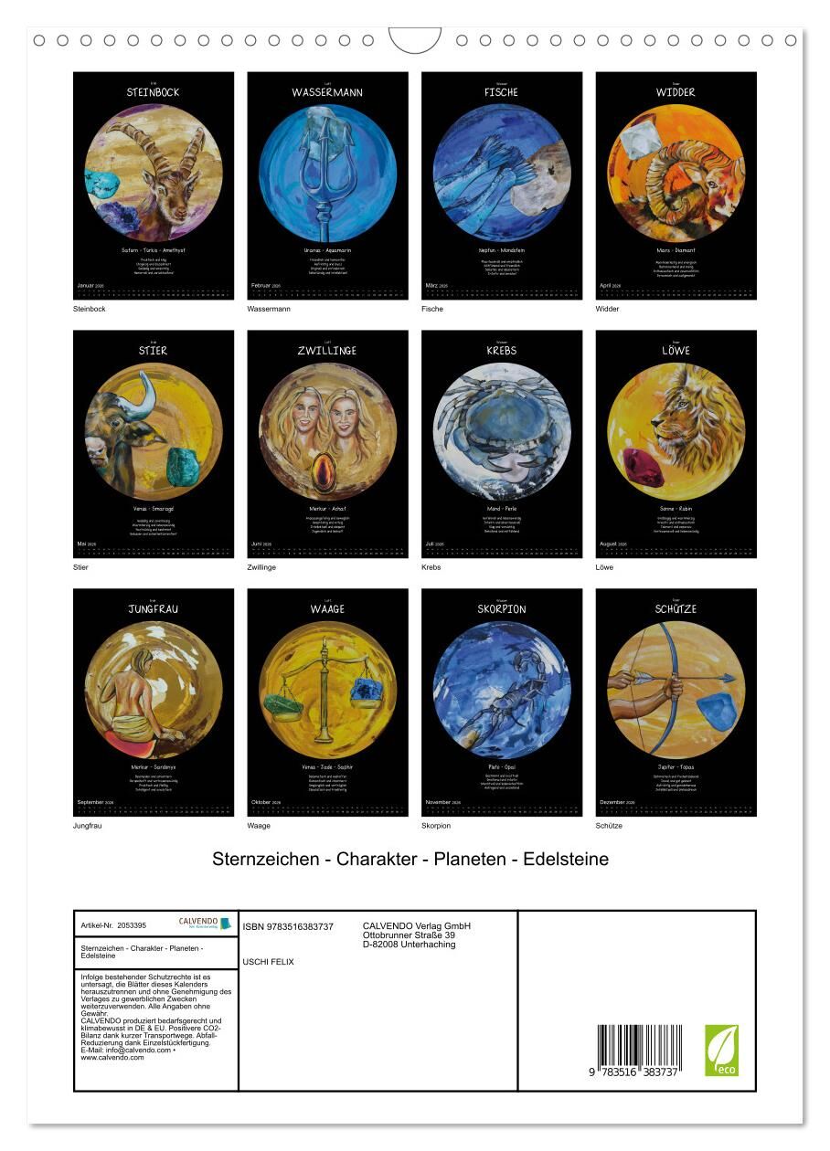 Mit diesem Sternzeichenkalender hat die Künstlerin Uschi Felix etwas ganz besonderes erschaffen. 12 Sternzeichen vermitteln individuelle Charaktereigenschaften mit dazugehörigen Planeten und die passenden Edelsteine.