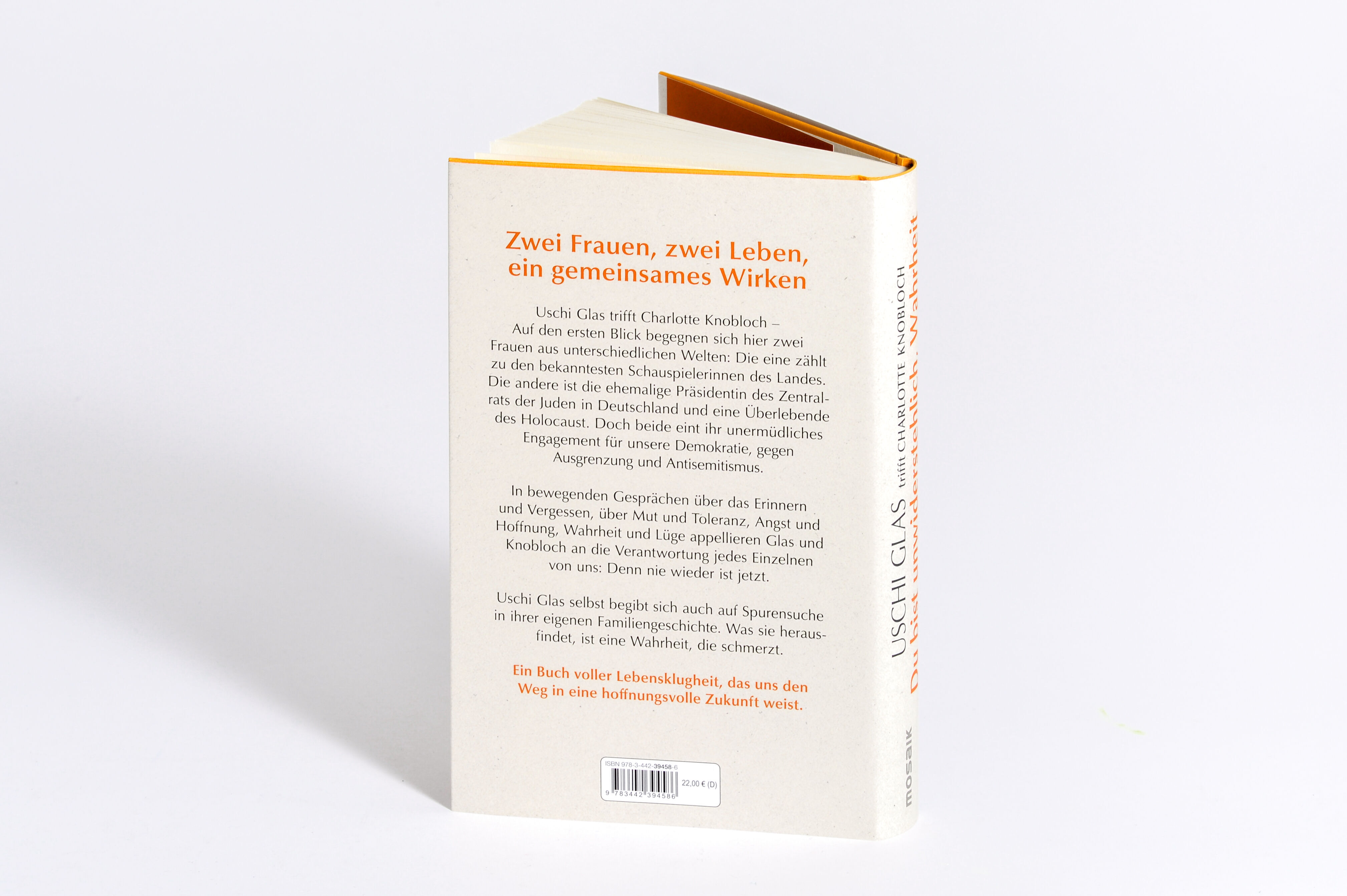 Zwei Frauen, zwei Leben, ein gemeinsamer Einsatz für die Zukunft Charlotte Knobloch (Jahrgang 1932) und Uschi Glas (Jahrgang 1944) Die eine ist die ehemalige Präsidentin des Zentralrats der Juden in Deutschland und eine Überlebende des Holocaust. Die andere zä...