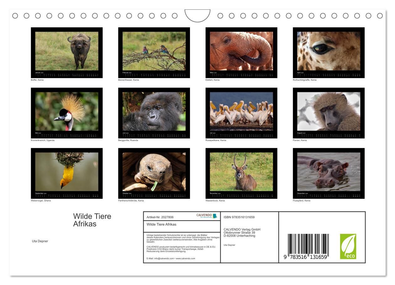Wildtiere aus nächste Nähe zu betrachten, ist ein unvergessliches Erlebnis. Dieses Kalender zeigt einzigartige Bilder, entführt in das exotische Tierreich Afrikas.
