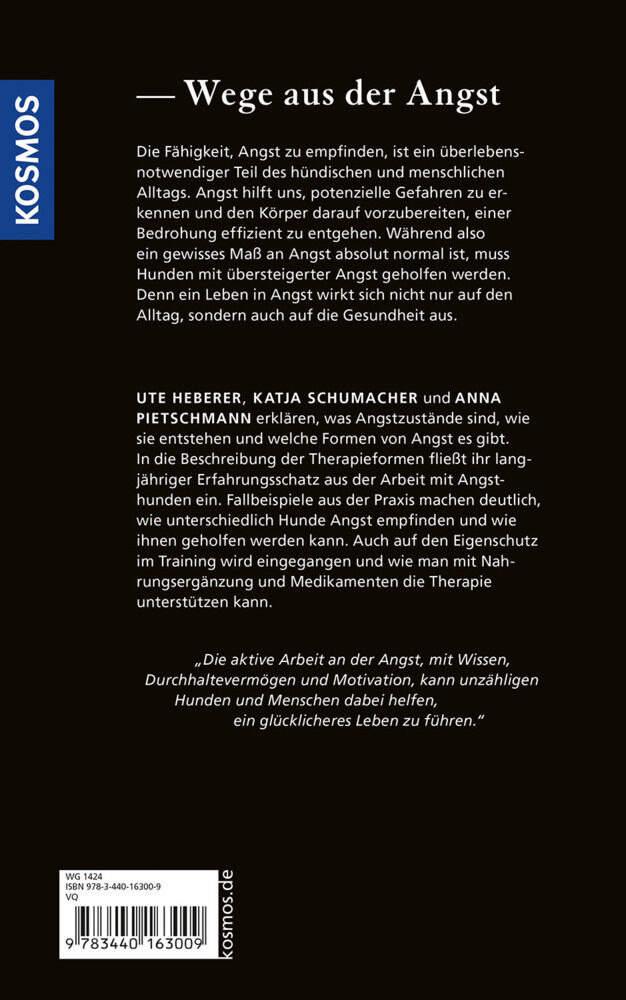 Angst beim Hund ist eines der dringlichsten Probleme bei Hundehaltern. Der Leidensdruck bei Hund und Mensch ist groß. Das Autorinnenteam geht in diesem Buch dem Thema auf den Grund. Was passiert im Körper, wie erkennt man Angst und reagiert richtig. Trainingsa...