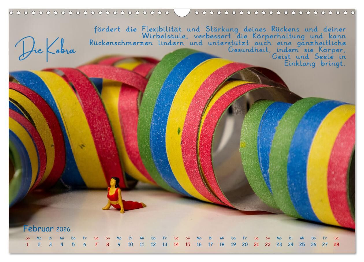 Dieser einzigartige Kalender verbindet die faszinierende Welt der Miniaturfiguren im Maßstab 1:87 mit der inspirierenden Praxis des Yoga. In kreativen, verfremdeten Umgebungen zeigen die winzigen Figuren klassische Yogaposen, während zu jeder Übung die körperl...