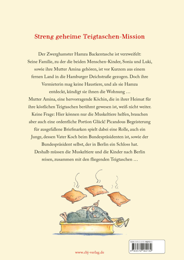 Geheime Teigtaschen-Mission Der Zwerghamster Hamza Backentasche ist verzweifelt: Seine Familie, zu der die beiden Menschen-Kinder, Sonia und Luki, sowie ihre Mutter Amina gehören, ist vor Kurzem aus einem fernen Land in die Hamburger Deichstraße gezogen. Doch ...