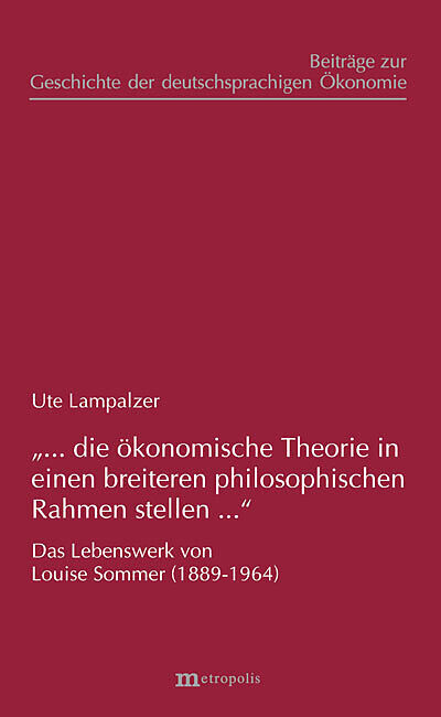 . die ökonomische Theorie in einen breiteren philosophischen Rahmen stellen. diese Worte, mit denen Louise Sommer das Ziel eines von ihr angedachten Buchprojekts beschreibt, können als Motto ihres gesamten wissenschaftlichen Werkes angesehen werden. Ihr Intere...