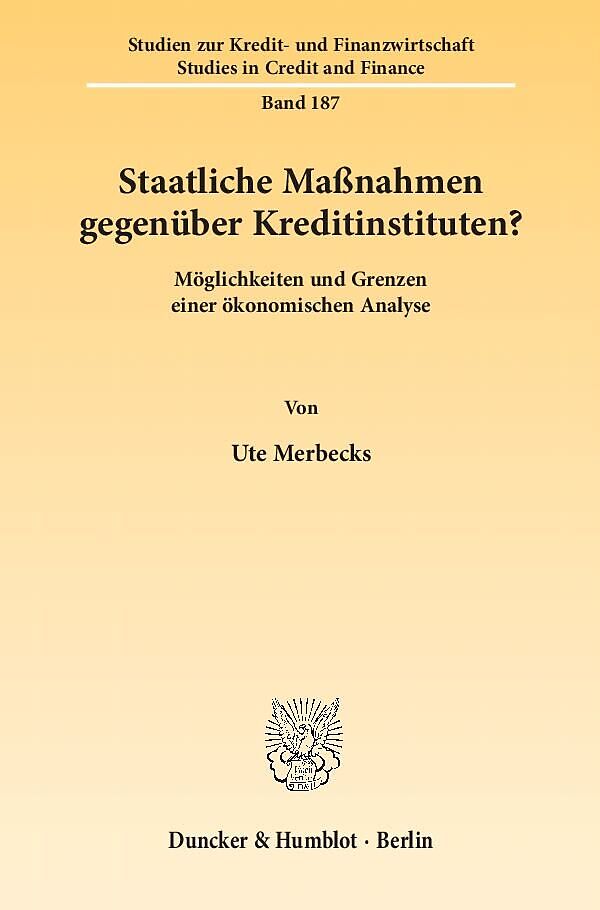 Staatliche Maßnahmen gegenüber Kreditinstituten sind allgemein wirtschaftspolitisch akzeptiert. Demgegenüber gelangt eine Analyse der ökonomischen Forschung zu dem Ergebnis, dass gerade keine einheitliche Literaturmeinung zur Notwendigkeit einer staatlichen Be...