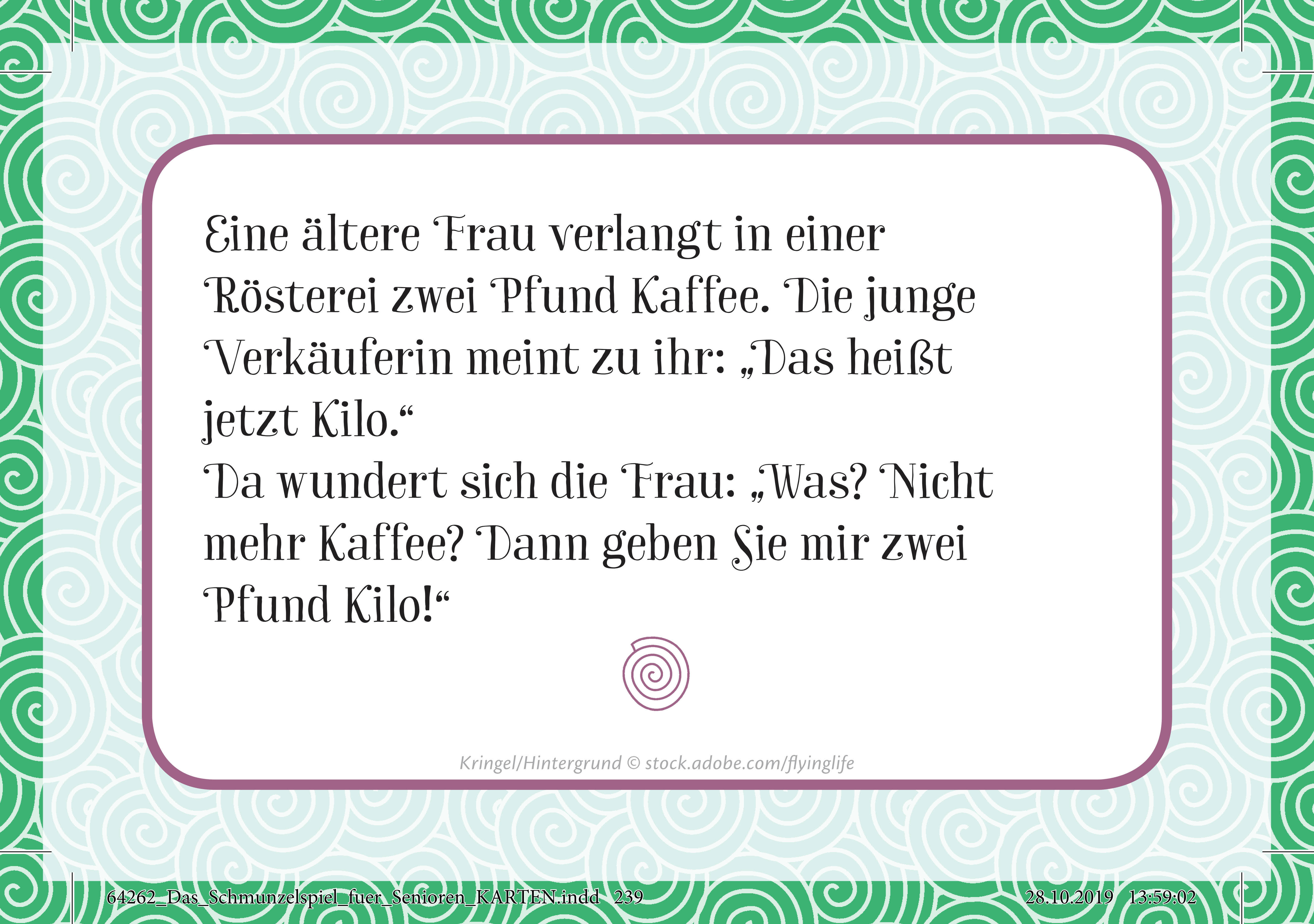 Kartenspiel-Set mit Schmunzelfaktor zur Aktivierung und Beschäftigung für Senioren und Seniorinnen, für Fachkräfte in Altenpflege und Seniorenarbeit sowie für pflegende Angehörige zu Hause +++ Diebe sind oft klüger als Ärzte. Meinst du? Natürlich, wenn sie wie...