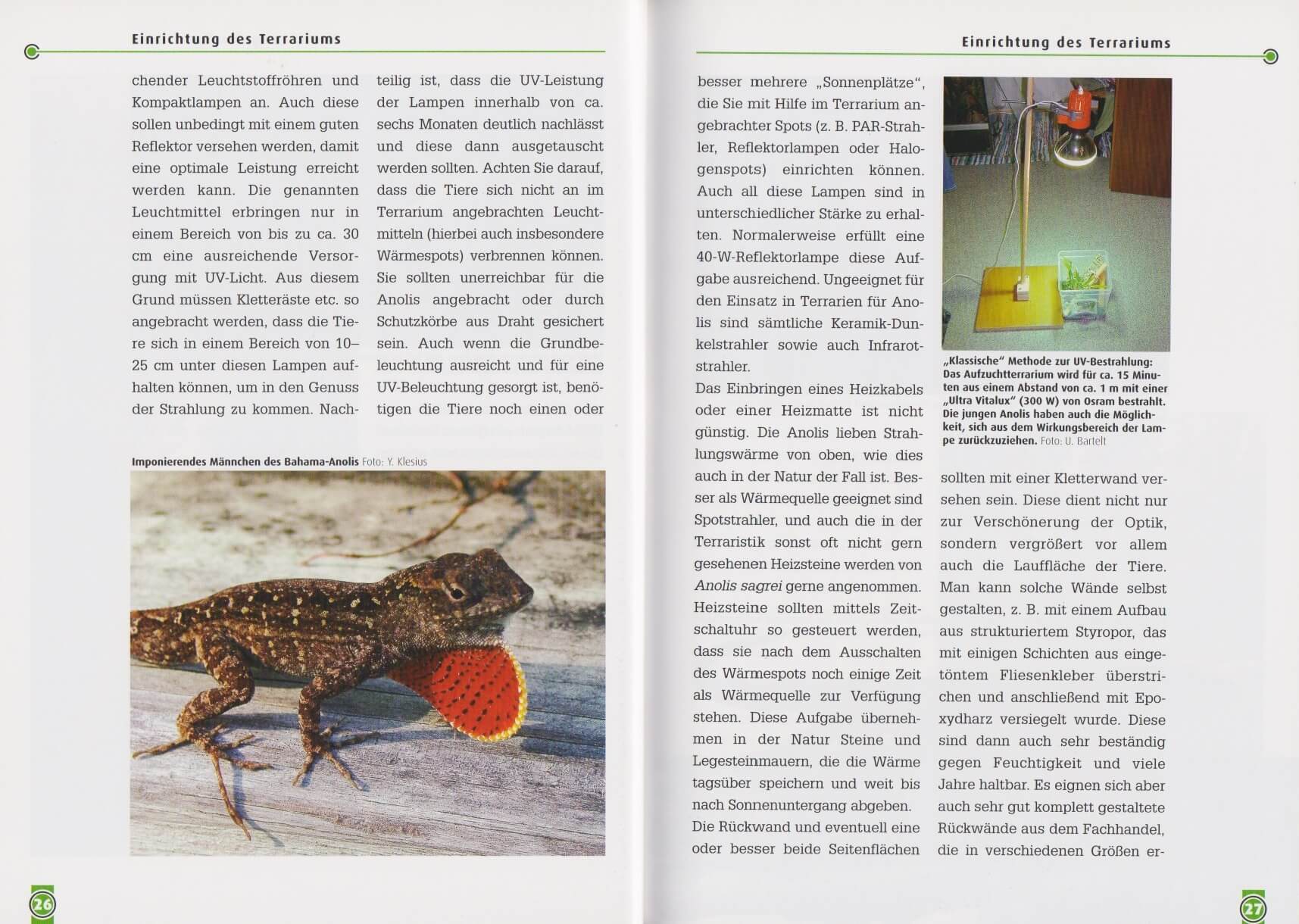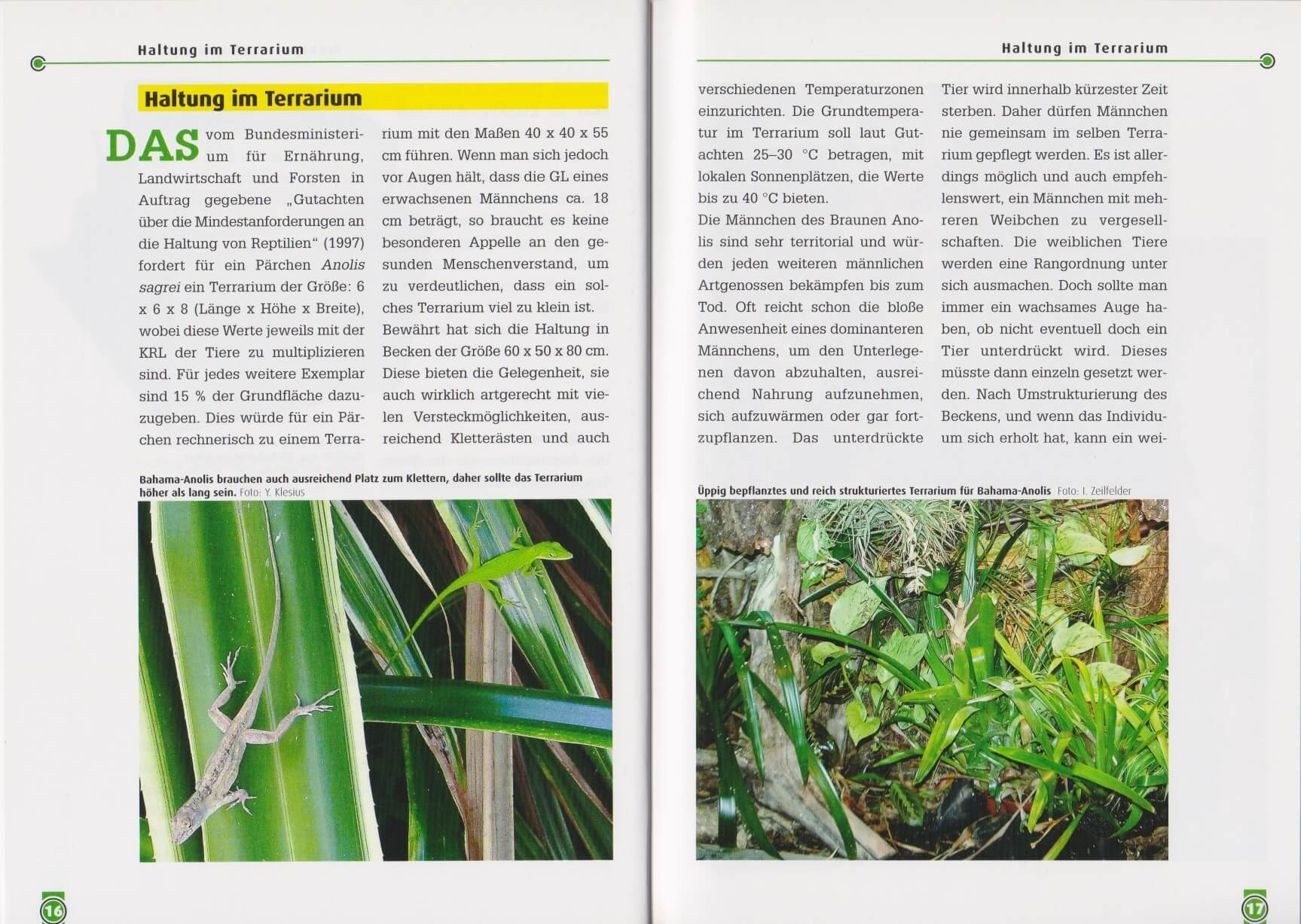 Nichts ist faszinierender als eine gesunde Gruppe von Bahama-Anolis (auch Saumfinger genannt) in einem artgerecht eingerichteten Terrarium. Die sehr lebhaften, tagaktiven Tiere zeigen sich nach der Eingewöhnung wenig scheu und können gut beobachtet werden. Sie...
