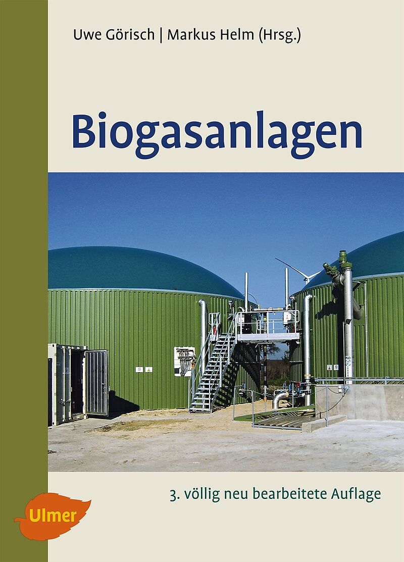 Abfälle 9, 11, 14Abbaugeschwindigkeit 33Abfalleigenschaft 14Abfallherkunft 15Ablagerungen 39Abluft 92Abschreibung 86Absorption 75,124Abwasser 12, 16, 40, 117Abwasserbehandlung 119Abwasserbehandlungsanlage 16Abwasserbeschaffenheit 118Acetat 27, 29Adaption 30Adaptionsprozesse 35Adsorption 75Aktivkohle 48Algen 35Alkohole 27Altholz 11Aluminium 81Ameisensäure 35, 39Aminosäuren 27, 28Ammoniak 47, 34Anbackungen 39Änderung 15, 16Anlagenplanung 15Anlagensicherheit 138Anlagentechnik 37Anschlusskosten 24Antibiotika 35Antrieb 42Apfelschlempe 11Apfeltrester 11Arbeitsschutz 139ATV 121Aufbereitungstechnik 82Aufbringung 23Aufnahmekapazität 15Aufschlussgrad 31Aufsichtsbehörde 14Aufstiegsleiter 42Ausbreitungsrechnung 103Außenbereich 18AVV 14Backabfälle 12Backwarenindustrie 25Bakterien 31, 35, 79Balgpumpe 39BauGB 19Baugenehmigung 13, 19Baugenehmigungsverfahren 15Bauleitplanung 135BauNVO 18Bauvorlagen 139Bebauungsplan 18Beförderungsmittel 17Behälter 23Beladung 31Bemessung 77Besiedlungsfl ächen 31, 40Beton 40, 70, 81Betonbehälter 40Betonpumpe 39Betriebshilfsstoffe 87Betriebsstoffe 87Betriebstemperatur 21Beurteilungspegel 112BHKW 37, 48, 49, 88, 94, 101Biertreber 11Bioabfälle 20, 37BioabfallVO 20, 34Biofi lter 46Biogasanlage 9, 13, 27, 33, 37Biogasentschwefelung 48Biogasertrag 63Biogasreinigung 35, 71Biogaszusammensetzung 34, 35Biomasse 18Biomassekraftwerk 11BiomasseV 75Biozönose 32 ff.Blattgemüse 53Blei 54Blut 17Blutmehl 12BNS 12Brenngase 47Brennstoff 11Brennstoffzelle 90Brotabfall 12Bundes-Immissionsschutzgesetz 13, 91Bunker 82Buttersäure 27, 28BVSE 12Cadmium 53, 54Catering-Einrichtungen 17Cellulose 27Chemiesorption 48Chemotherapeutika 35Chlorgehalt 47Chrom 54Citronensäure 35CSB-Gehalt 52Dachlaufsteg 42Denitrifi kation 125Deponiesickerwasser 16Desodorierung 37Desorption 123Dioxine 92Direkteinleitung 16, 119Drehkolbenpumpe 39Drehzahl 41Druck 47Drucksterilisation 39Düngemittel 23Düngemittelrecht 21Düngewert 53Durchsatzleistung 14Edelstahl 40EEG 24, 89Eigenstrombedarf 87Eigenüberwachung 87Einleitungsgrenzwerte 120Eintrag 39Entwicklungsländer 33Einzelfall 16Eiweiß 27, 28Emissionen 19, 101Emissionsgrenzwerte 92, 93Energieausbeute 53Energieertrag 64Energieerzeugung 15Energieverbrauch 41, 42Entpackung 56Entschwefelung 35, 40, 48Entwässerungsplanung 137Entwässerungssatzung 16Erdgas 74Erhitzung 34, 39Erlöse 88Essigsäure 27, 28 ff., 32Ethanol 29EU-Grenzen 17EU-Verordnung 1774/2002 12, 14 ff.Explosion 48Fachverband Biogas 12Fackeln 95Fällung 122Faulraum 31, 32Faulraumbelastung 31Faulraumvolumen 33Fe-Abscheider 38Federn 17Fermenter 28, 30 ff., 37, 39, 40, 45, 46, 83Fermentertemperatur 33Fermentierung 62Feststoffabtrennung 121Fett 27, 28, 31, 34, 35, 37Fettabscheiderinhalte 12, 25, 37Fettsäuren 27, 28Feuchte 47Feuerungswärmeleistung 15, 25Fleisch 25Flocken 27, 28Flockung 122Flotate 17, 25Flotatschlamm 12Fluorgehalt 47Fremdüberwachung 87Frischwasser 87Frittierfett 33Furane 92Fütterung 30, 32Gärbehälter 16Gärgutentwässerung 85Gärrest 14, 23, 25, 34, 50Gärrückstand 19, 22Gärsubstrat 28Gasausbeute 46Gasdom 44Gasdruckschwankung 47Gaseindüsung 40, 43Gasentnahme 42Gasertrag 10, 11Gasfackel 50Gasmenge 33Gasmotoren 47, 49Gaspendel 37Gasqualität 32Gasregelstrecke 47Gasreinigung 69 ff.Gasspeicher 68Gassystem 46, 57Gastemperatur 47Gasturbine 90Gasturbinenanlage 15Gasverwertung 72Gaswäsche 48Gaswechselzone 40Gaszusammensetzung 35Gebäude 80Gefährdungsklasse 81Gefahrstoffverordnung 14Geflügelmist 10, 30Gemische 23Gemüseabfälle 11 Genehmigung 13, 15, 17, 20, 25, 133Genehmigungsantrag 136, 140Genehmigungsmanagement 141Generationszeiten 27Geruch 37, 92, 96Gesamtsäurekonzentration 32Getreide 27, 31Getreidestroh 11Gewässer 16Gewerbegebiet 19, 25GiRL 95Grassilage 11Grenzwert 25, 53Grieben 17Großflügelrührwerke 41Grünland 24Gülle 10, 16, 17, 22, 30, 35Güteüberw