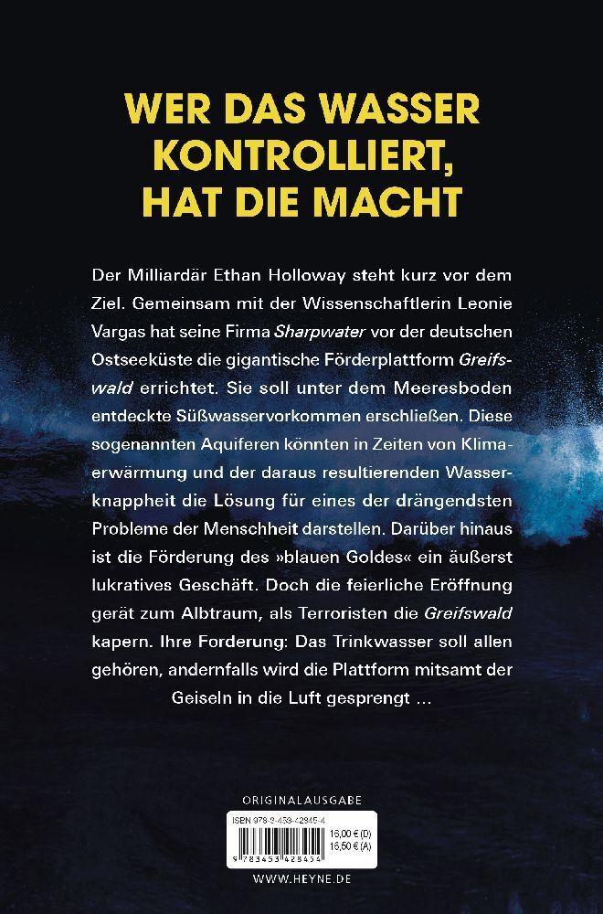 Der Kampf ums Wasser beginnt Der Milliardär Ethan Holloway steht kurz vor dem Ziel. Seine Firma Sharpwater hat vor der deutschen Ostseeküste die gigantische Förderplattform Greifswald errichtet. Sie soll unter dem Meeresboden entdeckte Süßwasservorkommen ersch...