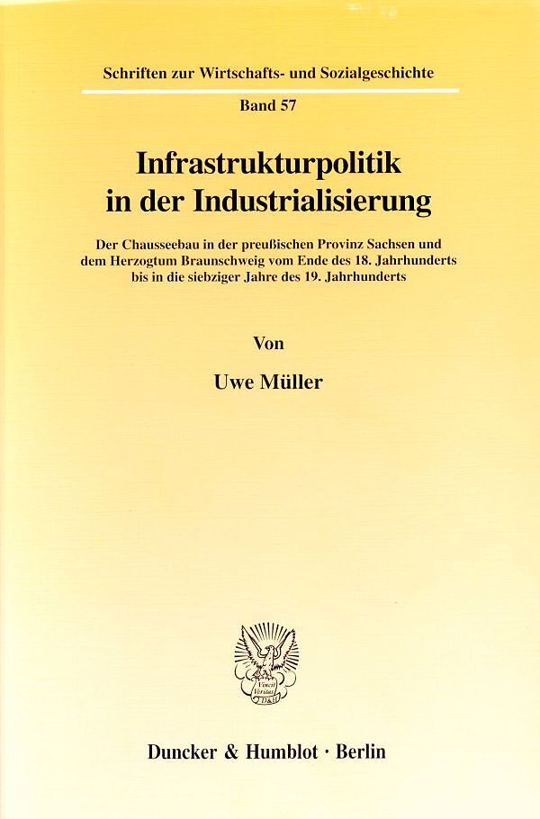Inhaltsübersicht: A. Theoretische Grundlagen und inhaltliche Schwerpunkte - B. Entwicklung von Agrarkapitalismus sowie beginnende Industrialisierung in der preußischen Provinz Sachsen und im Herzogtum Braunschweig - C. Die Entwicklung der Straßenverkehrsinfrastruktur bis 1815 - D. Die Entwicklung des provinzialsächsischen und des braunschweigischen Chausseenetzes von 1815 bis in die siebziger Jahre des 19. Jahrhunderts - E. Ziele und Motive der Straßenverkehrsinfrastrukturpolitik - F. Ordnungspolitische Grundsatzentscheidungen: Der Bau von Chausseen durch Gebietskörperschaften und Privatunternehmen - G. Der Staat als Gesetzgeber. Die Entwicklung des Wege- und Chausseerechts - H. Die Entwicklung der Straßen- und Wegeverwaltung - I. Die Finanzierung des Chausseebaus und der Chausseeunterhaltung - J. Wechselwirkungen zwischen Straßenverkehrsinfrastruktur und regionaler Wirtschaftsentwicklung - K. Resümee - Tabellenanhang - Quellen- und Literaturverzeichnis - Personen-, Orts- und Sachregister
