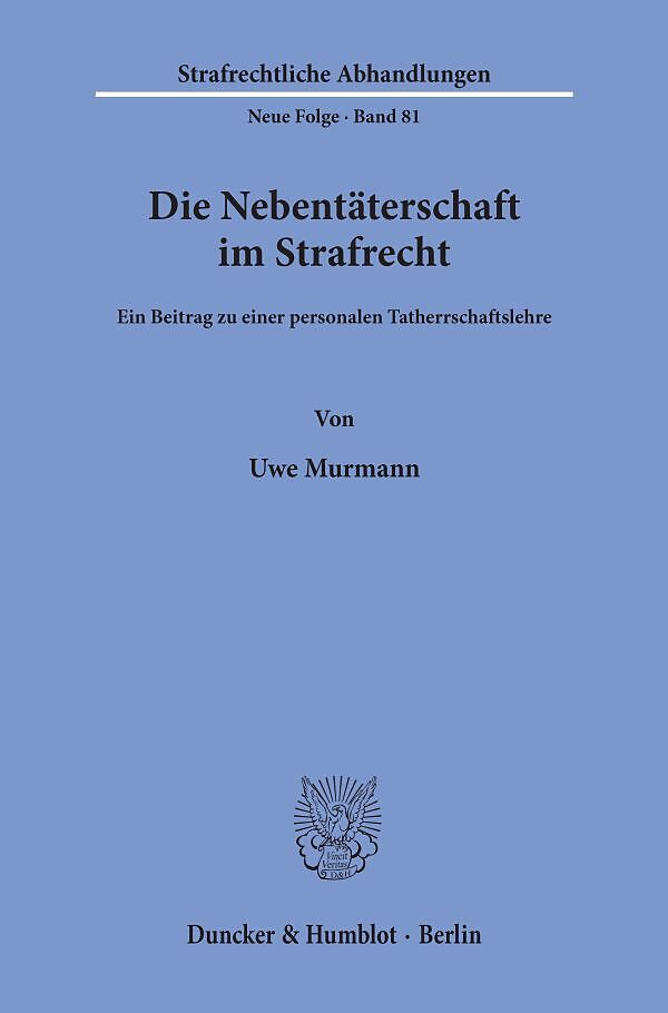 Die »Strafrechtlichen Abhandlungen - Neue Folge« wurden 1957 von Eberhard Schmidhäuser in Zusammenarbeit mit den deutschen Strafrechtslehrern in der Nachfolge der von Hans Bennecke begründeten »Strafrechtlichen Abhandlungen« (1896 bis 1942) eröffnet. Ihr Ziel ...