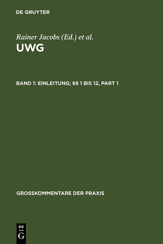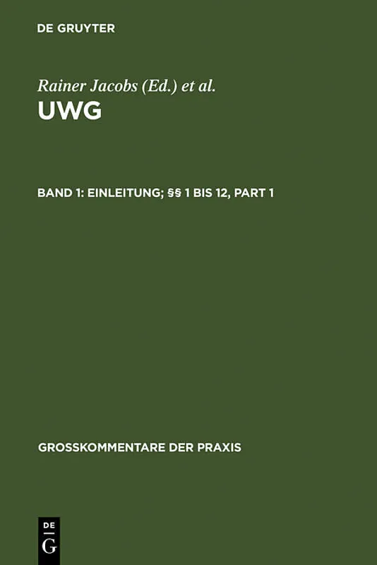 Frontmatter -- Einleitung -- A. Wettbewerb und Wirtschaftsordnung -- l. Begriff des Wettbewerbsrechtes -- II. Wettbewerbskonzeptionen -- III. Relevanz von Wettbewerbskonzeptionen für die Auslegung und Anwendung des UWG -- IV. Verfassungsrechtliche Grundlagen -- B. Geschichtliche Entwicklung, Rechtsquellen -- I. Die Entwicklung bis zum Erlaß des UWG von 1909 -- II. Das UWG von 1909 und die nachfolgende Rechtsentwicklung -- C. Die geschützten Rechtsgüter, ihre dogmatische Einordnung -- I. Schutzzweck, Schutzsubjekt und Schutzobjekt -- II. Die Sicht von Gesetzgebung und Rechtsprechung. Dogmengeschichtlicher Ausgangspunkt -- III. Die Lehren vom Individualrechtsschutz der Konkurrenten -- IV. Interessenschutz im Wettbewerbsrecht -- D. Zentralbegriffe des UWG -- I. Die guten Sitten. D1 - D57 -- I. Die guten Sitten. D 58 - D 115 -- I. Die guten Sitten. D 116 - D 164 -- II. Geschäftlicher Verkehr -- III. Handeln zu Zwecken des Wettbewerbs -- IV. Verkehrsauffassung -- E. Systematischer Standort des UWG -- I. Verhältnis zu wettbewerblichen Sondergesetzen (Nebengesetzen) -- II. Verhältnis zum Recht der Wettbewerbsbeschränkungen -- III. Verhältnis zum Gewerblichen Rechtsschutz -- IV. Verhältnis zum bürgerlichen Recht -- F. Internationalrechtliche Fragen -- I. Einführung -- II. Internationale Verträge zum Schutz gegen unlauteren Wettbewerb. F19 - F88 -- II. Internationale Verträge zum Schutz gegen unlauteren Wettbewerb. F89 - F154 -- III. Das internationale Privatrecht des unlauteren Wettbewerbs -- IV. Überblick über den Schutz gegen unlauteren Wettbewerb im europäischen Ausland -- V. Unlauterer Wettbewerb und Recht der EU. F318 - F 387 -- V. Unlauterer Wettbewerb und Recht der EU. F 388 - F 405 -- VI. Unlauterer Wettbewerb und Europäische Menschenrechtskonvention -- VII. Internationale Selbstkontrolle -- VIII. Wettbewerbsrechtliche Fragen der deutschen Einigung -- § 1 Generalklausel -- A. Schutz der Mitbewerber - konkurrentenbezogene Unlauterkeit -- I. "LeistungsWettbewerb" und individuelle Behinderung -- II. Machtmißbrauch im Wettbewerb -- III. Behinderung durch offensive Werbung. Teil 1 -- III. Behinderung durch offensive Werbung. Teil 2 -- IV. Anlehnende Werbung -- V. Sonstige Erscheinungsformen individueller Behinderung -- Frontmatter -- § 1 Generalklausel -- C. Schutz sonstiger Marktteilnehmer ("Stufenwettbewerb") -- I. Überblick und Grundlagen -- II. Ausgewählte Einzelfragen des Absatzmarketings -- III. Einzelfragen des Beschaffungsmarketing -- D. Schutz der Institution Wettbewerb ("allgemeine Marktbehinderung") -- I. Die Institution Wettbewerb als Schutzgut des UWG -- II. Der Tatbestand der "allgemeinen Marktbehinderung" und seine Problematik -- III. Die unentgeltliche Abgabe von Waren zu Werbezwecken -- IV. Die unentgeltliche Abgabe von Presseerzeugnissen -- V. Die Preisunterbietung -- E. Die öffentliche Hand. -- I. Die Beteiligung der öffentlichen Hand am Wirtschaftsleben. -- II. Rechtsweg und Rechtsschutz bei Klagen gegen die öffentliche Hand -- III. Inanspruchnahme wettbewerbsrechtlichen Schutzes durch die öffentliche Hand -- IV. Anwendbarkeit des Wettbewerbsrechts auf das Handeln der öffentlichen Hand -- V. Wettbewerbsrechtliche Verhaltensanforderungen an die öffentliche Hand -- VI. Fallgruppen wettbewerbswidrigen Handelns der öffentlichen Hand -- VII. Öffentliche Hand und Kartellrecht -- Normen als Verstoß gegen § 1 -- ERSTER ABSCHNITT. Geschichtliche Entwicklung -- ZWEITER ABSCHNITT. Rechtslage. A. Ausgangspunkt, Funktion und Bedeutung der Anwendbarkeit des § 1 -- ZWEITER ABSCHNITT. Rechtslage. B. Der Gesetzesverstoß als Verstoß gegen die "guten Sitten" -- ZWEITER ABSCHNITT. Rechtslage. C. Die in Betracht kommenden Normen -- ZWEITER ABSCHNITT. Rechtslage. D. Die Systematik der für § 1 relevanten Normkategorien -- ZWEITER ABSCHNITT. Rechtslage. E. Die wertbezogenen Normen. Teil 1 -- ZWEITER ABSCHNITT. Rechtslage. E. Die wertbezogenen Normen. Teil 2 -- ZWEITER ABSCHNITT. Rechtslage. F. Wertneutrale Vorschriften -- DRITTER ABSCHNITT. Die Kritik an der h.M. und eigene Lösungsvorschläge -- Anhänge I-X. Anhang I -- Anhänge I-X. Anhang II -- Anhänge I-X. Anhang III -- Anhänge I-X. Anhang IV -- Anhänge I-X. Anhang V -- Anhänge I-X. Anhang VI -- Anhänge I-X. Anhang VII -- Anhänge I-X. Anhang VIII -- Anhänge I-X. Anhang IX -- Anhänge I-X. Anhang X -- § 2 Begriff der Waren und gewerblichen Leistungen -- § 2 Begriff der Waren und gewerblichen Leistungen -- § 3 Irreführende Angaben. -- I. Allgemeine Kennzeichnung der Vorschrift -- II. Schutzzweck -- III. Irreführungsverbot und Verfassungsrecht: § 3 als Freiheitsschrankennorm -- IV. Irreführungsverbot und EG-Recht -- V. Dogmatik und Systemfragen -- VI. Irreführungsverbot und Informationsgebot -- VII. Irreführungsverbot und Kennzeichnungsrecht: irreführende gesetzliche Bezeichnungen -- VIII. Normadressaten des Irreführungsverbots -- IX. Anwendungsbereich: öffentliche Werbung und Einzelwerbung -- X. Angaben -- XI. Irreführung -- XII. Irreführung über geschäftliche Verhältnisse. Teil 1 -- XII. Irreführung über geschäftliche Verhältnisse. Teil 2 -- XII. Irreführung über geschäftliche Verhältnisse. Teil 3 -- XII. Irreführung über geschäftliche Verhältnisse. Teil 4 -- XIII. Besonderheiten der Rechtsdurchsetzung: zur Fassung von Unterlassungsanträgen -- XIV. Beweis, Beweismittel, Beweislast -- § 4 Strafbare Werbung. -- I. Allgemeines -- II. Der objektive Tatbestand -- III. Der subjektive Tatbestand -- IV. Zur Rechtfertigung -- V. Irrtum -- VI. Vollendung der Tat und Versuch -- VII. Täterschaft und Teilnahme -- VIII. Konkurrenzen -- § 5 Gattungsbezeichnungen; Bildwerbung -- § 5 Gattungsbezeichnungen; Bildwerbung -- § 6 Konkurswarenverkauf. -- I. Entstehungsgeschichte -- II. Zweck und Bedeutung -- III. Voraussetzungen -- IV. Einzelfragen zum Anwendungsbereich der Vorschrift -- V. Verhältnis zu anderen Bestimmungen -- VI. Zivilrechtliche Ansprüche -- § 6a Hersteller- und Gr