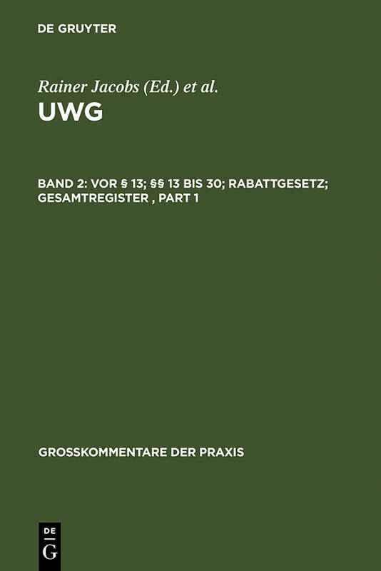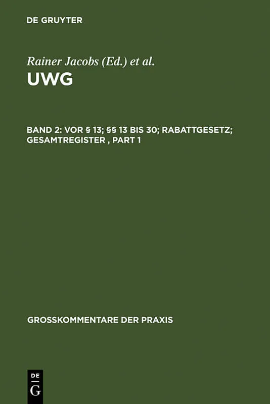 Keine ausführliche Beschreibung für "Vor 13; 13 bis 30; Rabattgesetz; Gesamtregister" verfügbar. Autorentext Dr. Helmut Köhler ist ordentlicher Professor an der Universität München und Richter im Wettbewerbs- und Kartellsenat des OLG München. Inhalt ...