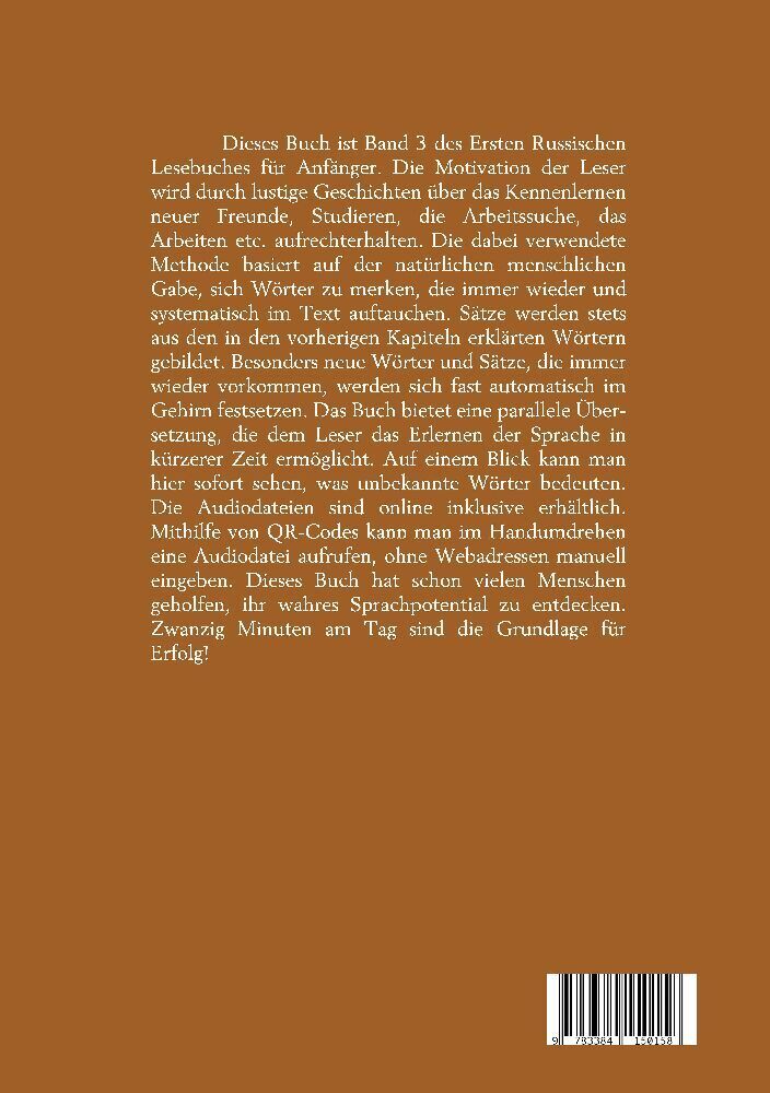 Dieses Buch ist Band 3 des Ersten Russischen Lesebuches für Anfänger. Die Motivation der Leser wird durch lustige Alltagsgeschichten über das Kennenlernen neuer Freunde, Studieren, die Arbeitssuche, das Arbeiten etc. aufrechterhalten. Die dabei verwendete Meth...