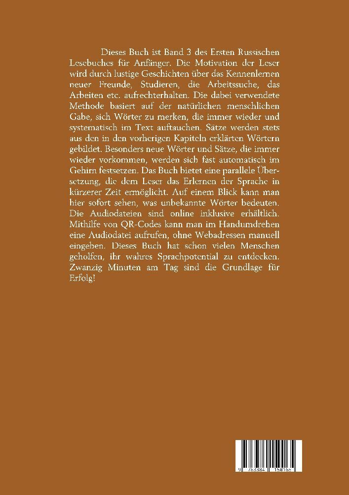 Dieses Buch ist Band 3 des Ersten Russischen Lesebuches für Anfänger. Die Motivation der Leser wird durch lustige Alltagsgeschichten über das Kennenlernen neuer Freunde, Studieren, die Arbeitssuche, das Arbeiten etc. aufrechterhalten. Die dabei verwendete Meth...