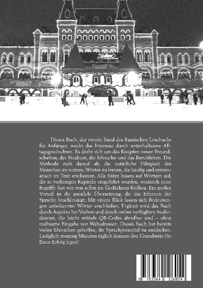 Dieses Buch, der zweite Band des Russischen Lesebuchs für Anfänger, weckt das Interesse durch unterhaltsame Alltagsgeschichten. Es dreht sich um das Knüpfen neuer Freundschaften, das Studium, die Jobsuche und das Berufsleben. Die Methode zielt darauf ab, die n...