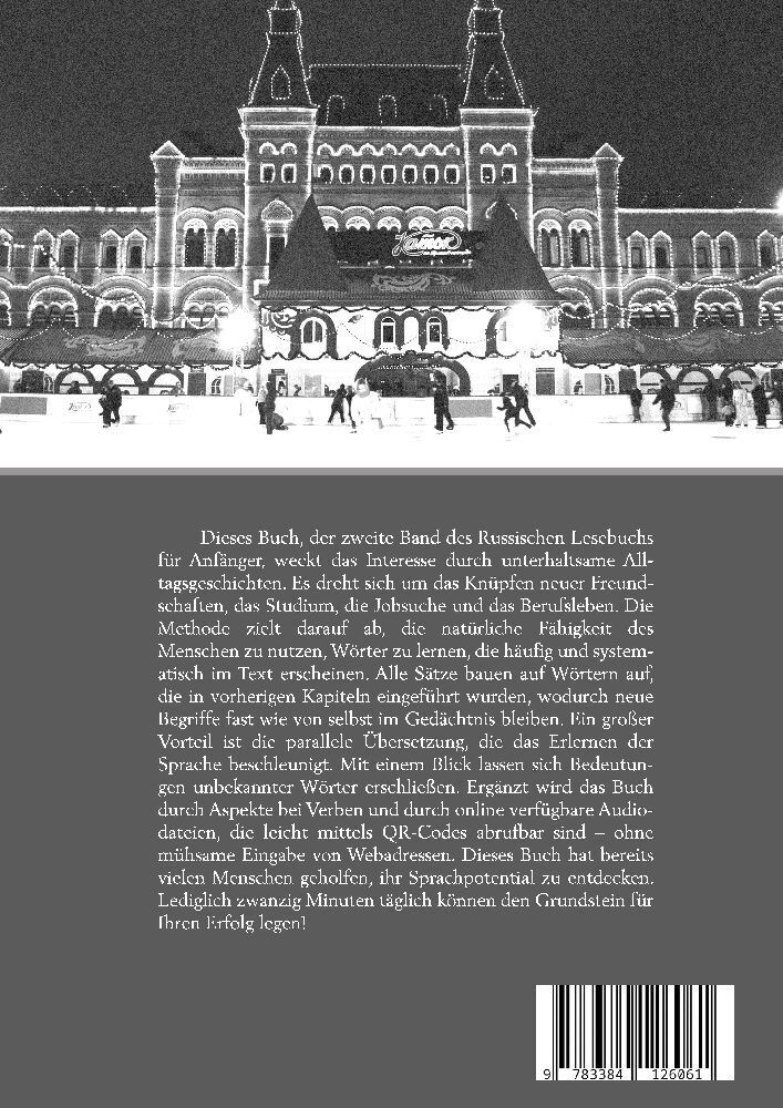Dieses Buch, der zweite Band des Russischen Lesebuchs für Anfänger, weckt das Interesse durch unterhaltsame Alltagsgeschichten. Es dreht sich um das Knüpfen neuer Freundschaften, das Studium, die Jobsuche und das Berufsleben. Die Methode zielt darauf ab, die n...