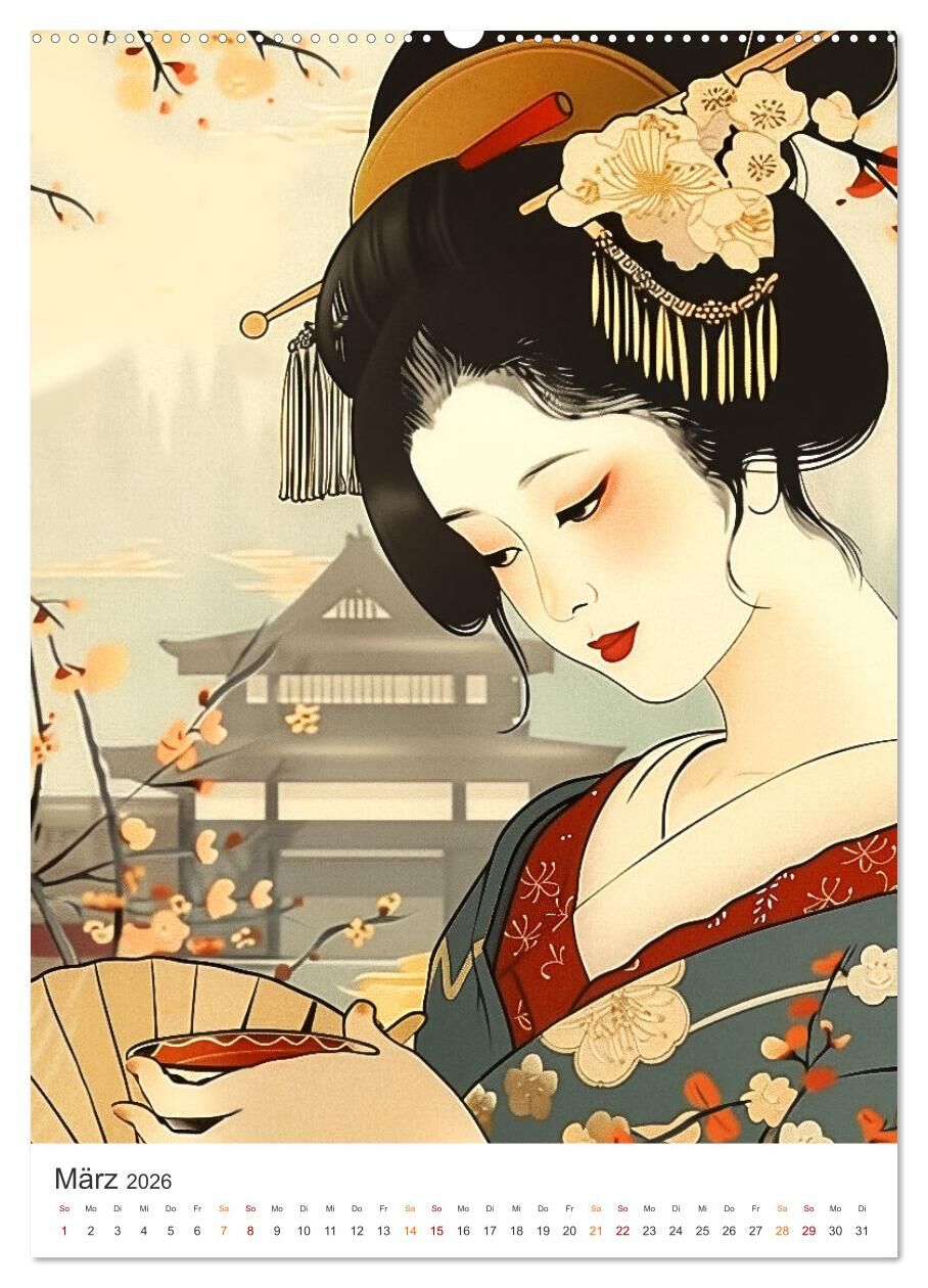 Geisha - Old School Poster Style (Wandkalender 2026 DIN A2 hoch), CALVENDO Monatskalender
