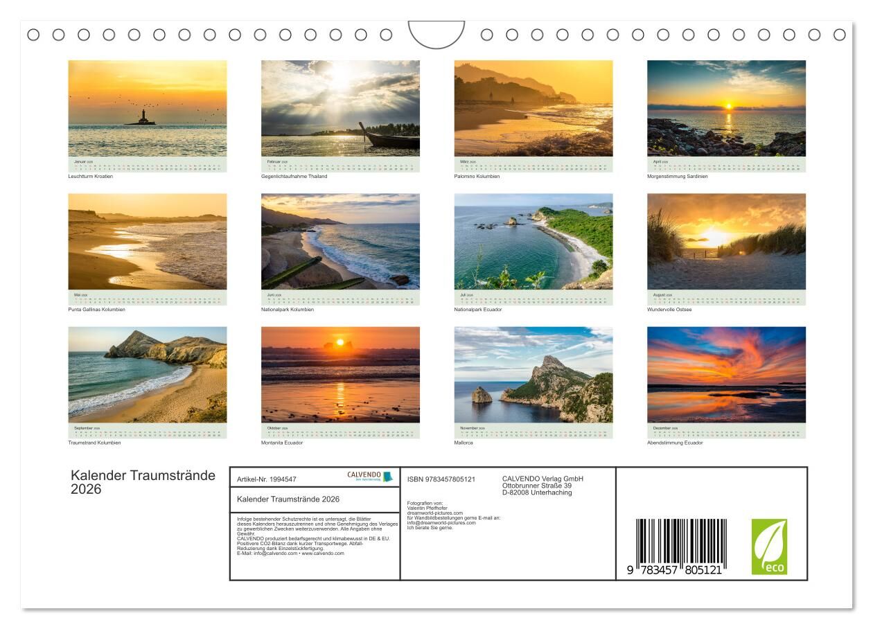 Kalender Traumstrände 2026 (Wandkalender 2026 DIN A4 quer), CALVENDO Monatskalender
