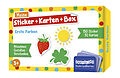 Stickerspaß im handlichen Format für die Kleinsten ab 3 Jahren ist hier garantiert! Die liebevoll gestaltete Box mit 30 Mitmachkarten zum kreativen Bekleben bietet reichlich Abwechslung: Rote Feuerwehrautos, grüne Kleeblätter und blaue Jeans müssen auf die ric...Stickerspaß im handlichen Format für die Kleinsten ab 3 Jahren ist hier garantiert! Die liebevoll gestaltete Box mit 30 Mitmachkarten zum kreativen Bekleben bietet reichlich Abwechslung: Rote Feuerwehrautos, grüne Kleeblätter und blaue Jeans müssen auf die richtige Stelle gestickert werden, gelbe Zitronen, orange Basketbälle und grüne Bäume warten darauf, in den richtigen Farben weiterbemalt zu werden und auf bunte Hintergründe müssen die Kinder die richtigen Gegenstände in der korrekten Farbe kleben. 30 Karten mit 150 Stickern bieten alles, was das Kinderherz begehrt! Diese Sticker-Karten-Boxen übertragen das beliebte Konzept der Stickerhefte auf ein neues, praktisches Format. Sie bieten rund um das Lieblingsthema eine unkomplizierte und gleichzeitig fantasievolle Beschäftigung, die Kids viel Spaß macht. Außerdem eignen sich die handlichen Karten in der Stülpdeckelschachtel ideal zum Mitnehmen, und die Karten können ganz einfach aufgeteilt werden. Ganz nebenbei werden zusätzlich noch Konzentrationsfähigkeit und Feinmotorik geschult. Die kleinen Meisterwerke können super verschenkt werden, denn auf der Rückseite jeder Karte gibt es ein Widmungsfeld, das man ausfüllen kann. Die liebevoll gestalteten Karten sind also auch ein schönes Geschenk für Familie, Freundinnen und Freunde!
