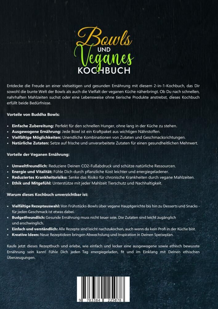 Entdecke die Freude an einer vielseitigen und gesunden Ernährung mit diesem 2-in-1-Kochbuch, das Dir sowohl die bunte Welt der Bowls als auch die Vielfalt der veganen Küche näherbringt. Ob Du nach schnellen, nahrhaften Mahlzeiten suchst oder eine Lebensweise o...