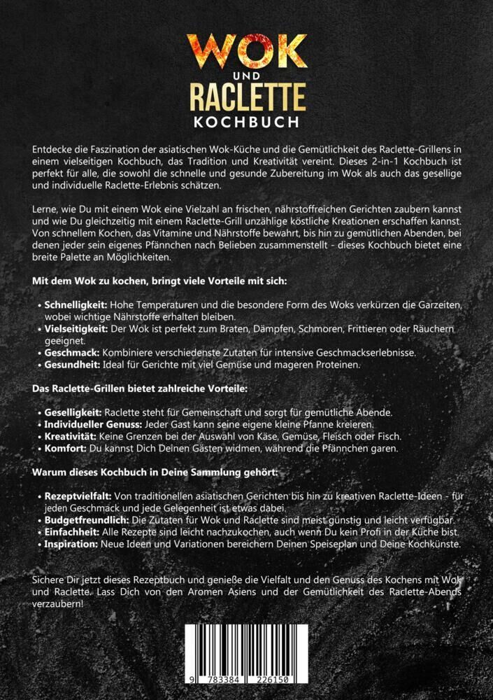 Entdecke die Faszination der asiatischen Wok-Küche und die Gemütlichkeit des Raclette-Grillens in einem vielseitigen Kochbuch, das Tradition und Kreativität vereint. Dieses 2-in-1 Kochbuch ist perfekt für alle, die sowohl die schnelle und gesunde Zubereitung i...