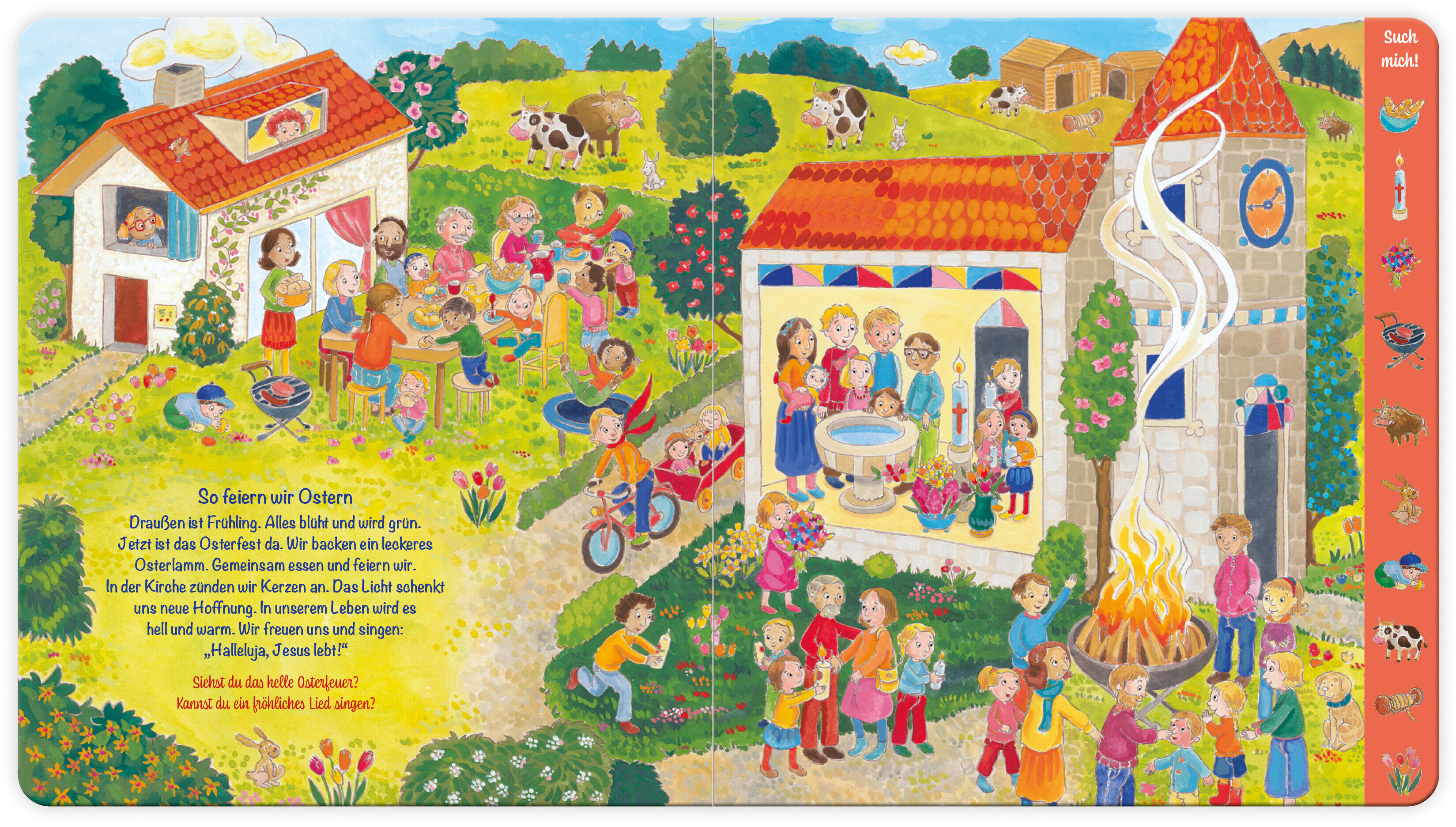 Von Karneval über Fastenzeit und Karwochebis Ostern und Pfingsten - Inklusive der biblischen Ostergeschichte - Kinder ab 2 Jahren erleben spielerisch die Osterbotschaft - Bunt und detailreich illustriert mit kleinen Suchbildern am Rand Wimmelspaß zu Ostern: ...