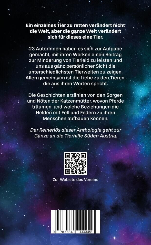 Ein einzelnes Tier zu retten verändert nicht die Welt, aber die ganze Welt verändert sich für dieses eine Tier. 23 AutorInnen haben es sich zur Aufgabe gemacht, mit ihren Werken einen Beitrag zur Minderung von Tierleid zu leisten und uns aus ganz persönlicher ...