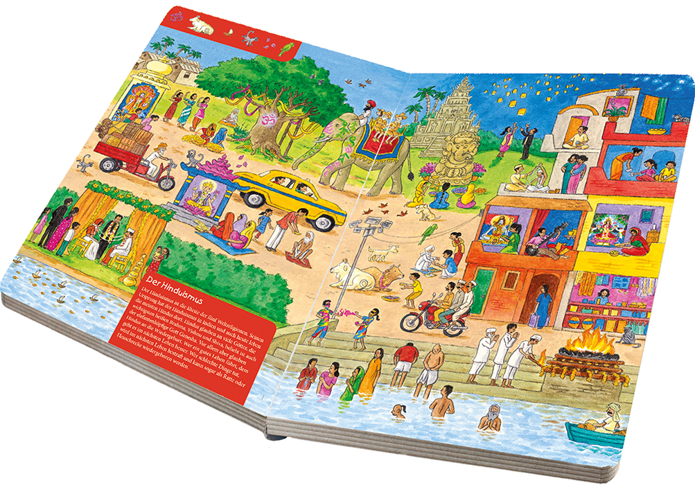 Die fünf großen Religionen der Welt - Anschauliche Erklärungen zu Buddhismus, Hinduismus, Judentum, Christentum und Islam - mit Poster im Format 36 x 52 cm Dieses farbenfroh illustrierte Wimmelbuch lädt schon die Kleinsten dazu ein, die fünf großen Religionen ...