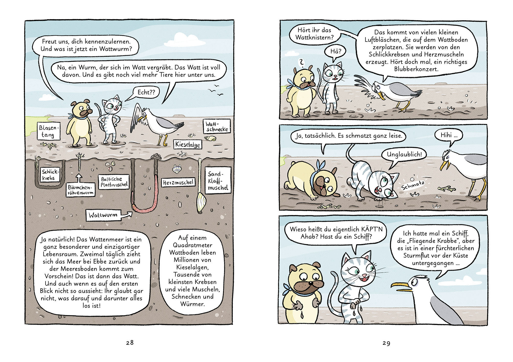 Mein Abenteuercomic für den Spaß am Lesen Mops und Kätt fahren an die Nordsee, wo sie eine Woche lang auf einen alten Leuchtturm aufpassen. Von den Leuchtturmwärtern Gundel und Knut erfahren sie jede Menge über das Wattenmeer und seine Bewohner. Aber auch von ...