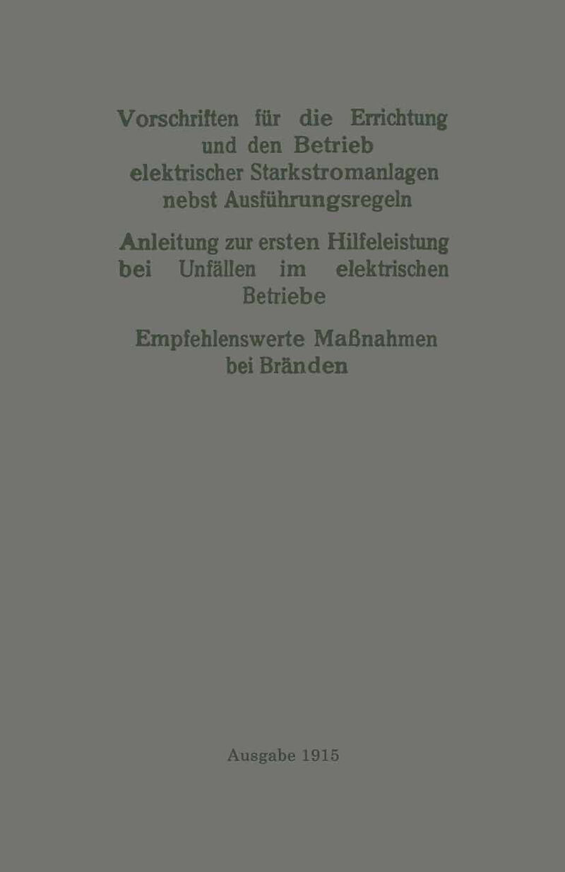 Vorschriften für die Errichtung und den Betrieb elektrischer Starkstromanlagen nebst Ausführungsregeln