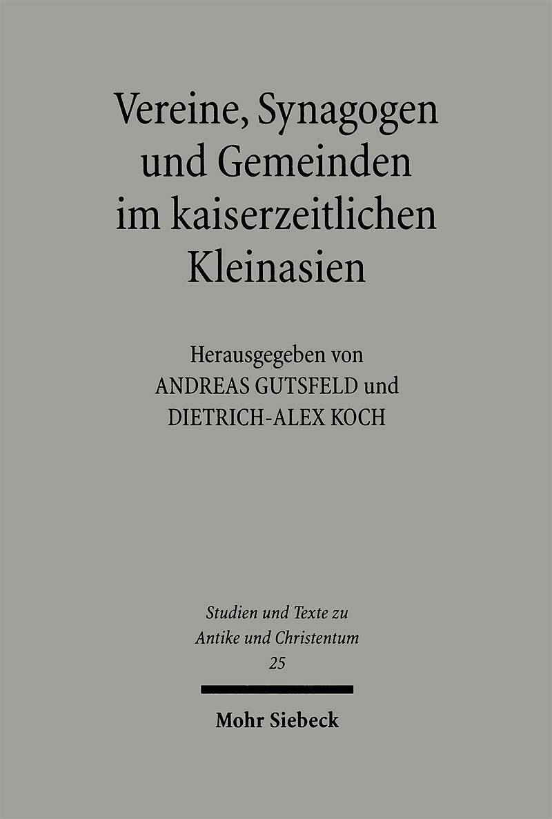 The essays in this volume explore specific aspects of the associations, synagogues, and Christian communities in the cities of the Roman empire from the first to the third century CE and provide a profile of their individual characteristics and their relations...