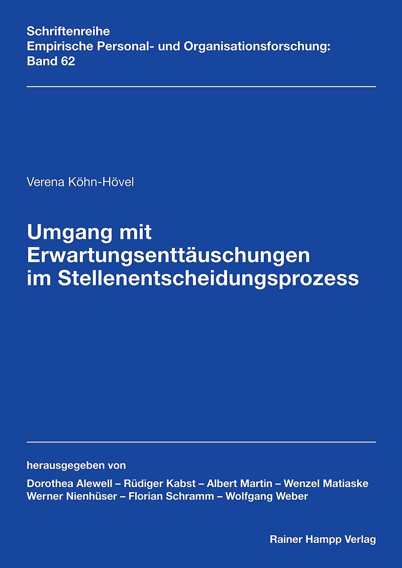 Die vorliegende Arbeit verfolgt das Ziel, zu beschreiben und zu erklären, wie Bewerber mit Erwartungsenttäuschungen im Stellenentscheidungsprozess umgehen. Die Besonderheit der Arbeit besteht in der expliziten Darstellung und Diskussion von drei Verhaltensmech...