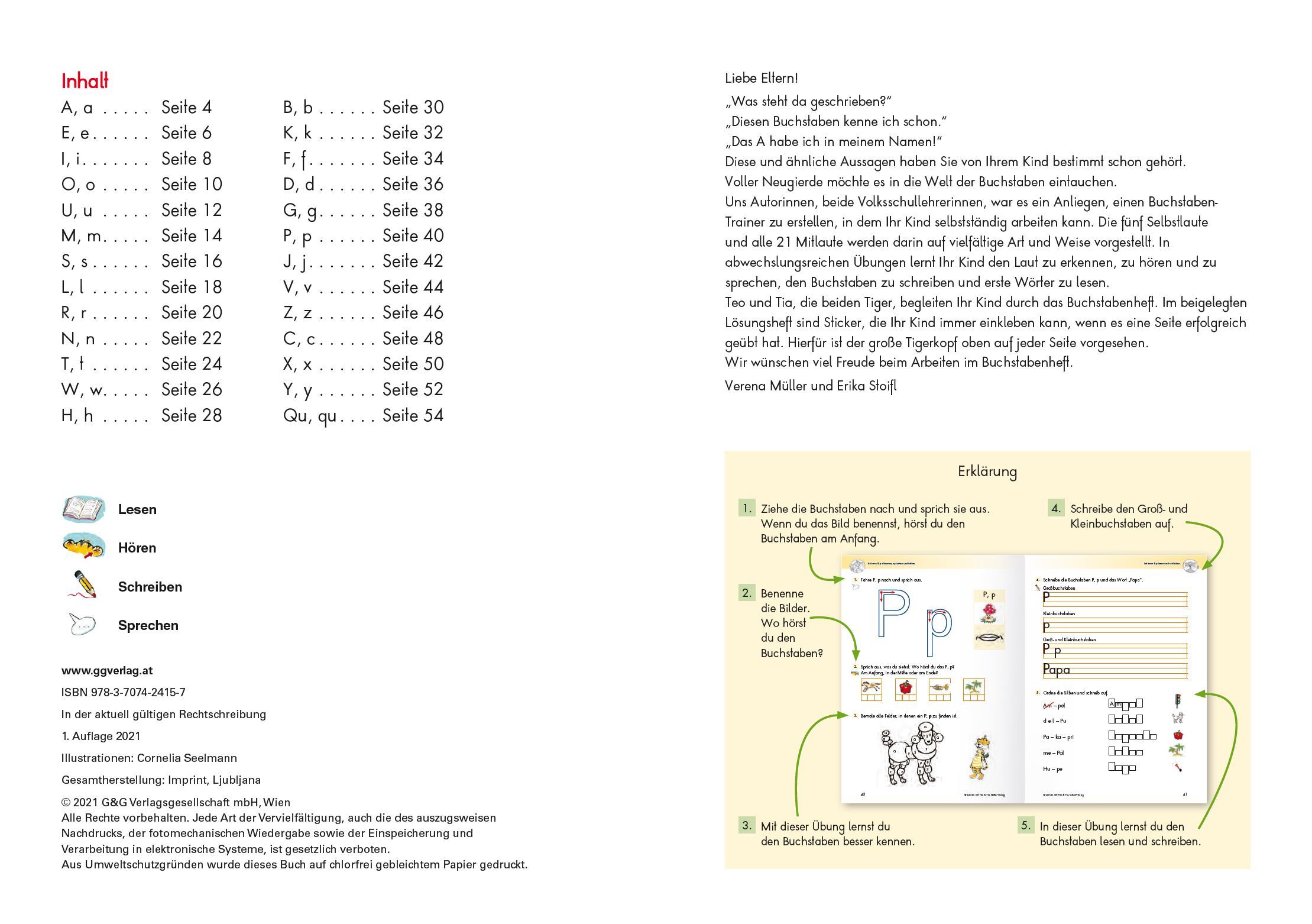 Mit Teo und Tia zum Buchstaben-Profi! Ganz einfach und spielerisch erlernen SchulanfängerInnen mit dem neuen Buchstaben-Trainer das gesamte ABC. Auf jeder Doppelseite wird gezielt ein Buchstabe erarbeitet. Sprechen, Hören, Lesen und Schreiben werden dabei geü...