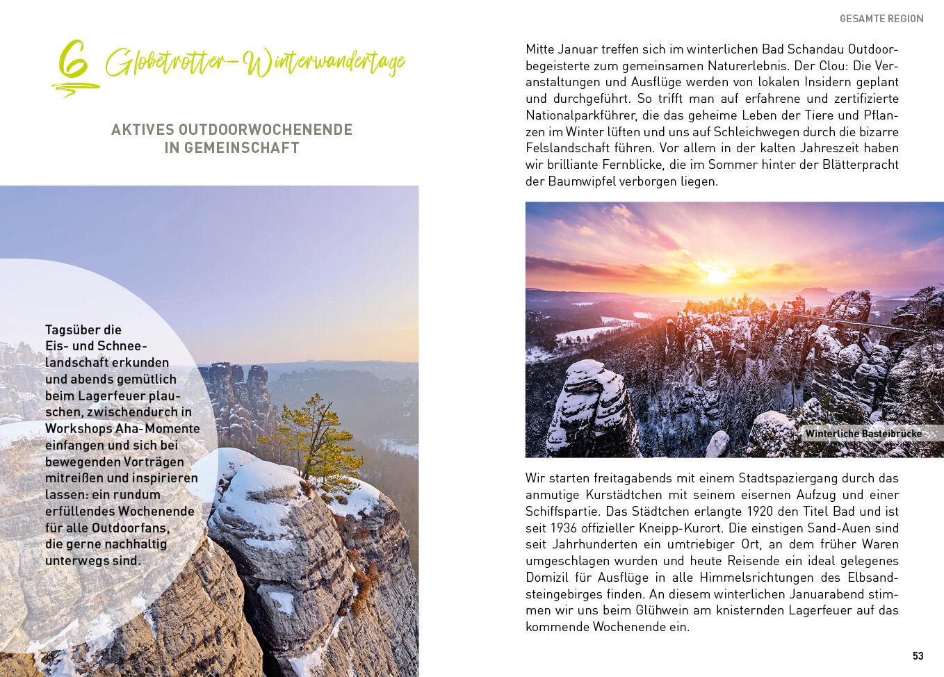 Auf einem Felsplateau stehen und über dem endlosen Nebelmeer weit ins bergige Land blicken: das ist der Sehnsuchtsort Sächsische Schweiz. Das Naturparadies, in dem schroffe Sandsteinflanken senkrecht in die Höhe schießen, Bäche durch dämmrige Schluchten murmel...