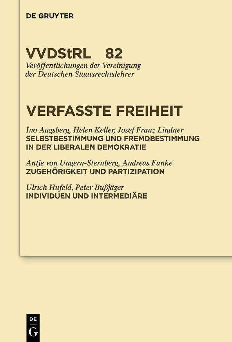 Dieser Band enthält die Referate und Diskussionen der Tagung der Staatsrechtslehrervereinigung in Bremen vom 5. bis 7. Oktober 2022: VERFASSTE FREIHEIT Ino Augsberg, Helen Keller, Josef Franz Lindner: Selbstbestimmung und Fremdbestimmung in der liberalen Demo...
