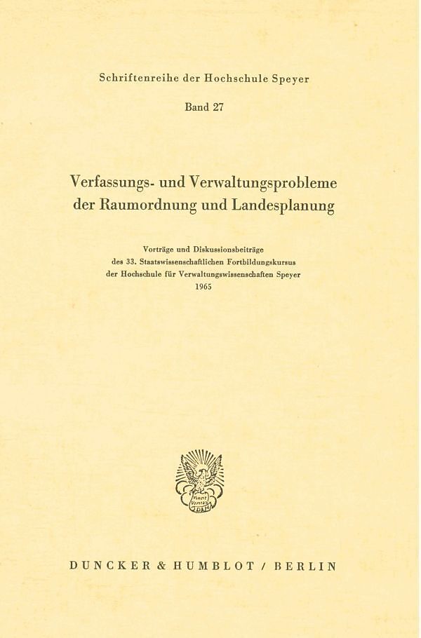 Klappentext Für diesen Titel ist noch kein Beschreibungstext vorhanden. Inhalt F. Duppré Ziele der Raumordnung und Landesplanung. Eine Übersicht über die Planungsaufgaben F. Halstenberg Bund und Raumordnung A. Nouvortne Raumordnung und Selbstverwaltungsgaranti...