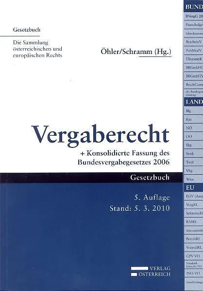 Aktuelle Sammlung aller vergaberechtlich relevanten Bestimmungen auf nationaler und europäischer Ebene mit Stand 5. 3. 2010 - Berücksichtigung der Novelle 2009 zum Bundesvergabegesetz 2006 Aktuell enthält diese Ausgabe die konsolidierte Fassung des Bundesverga...