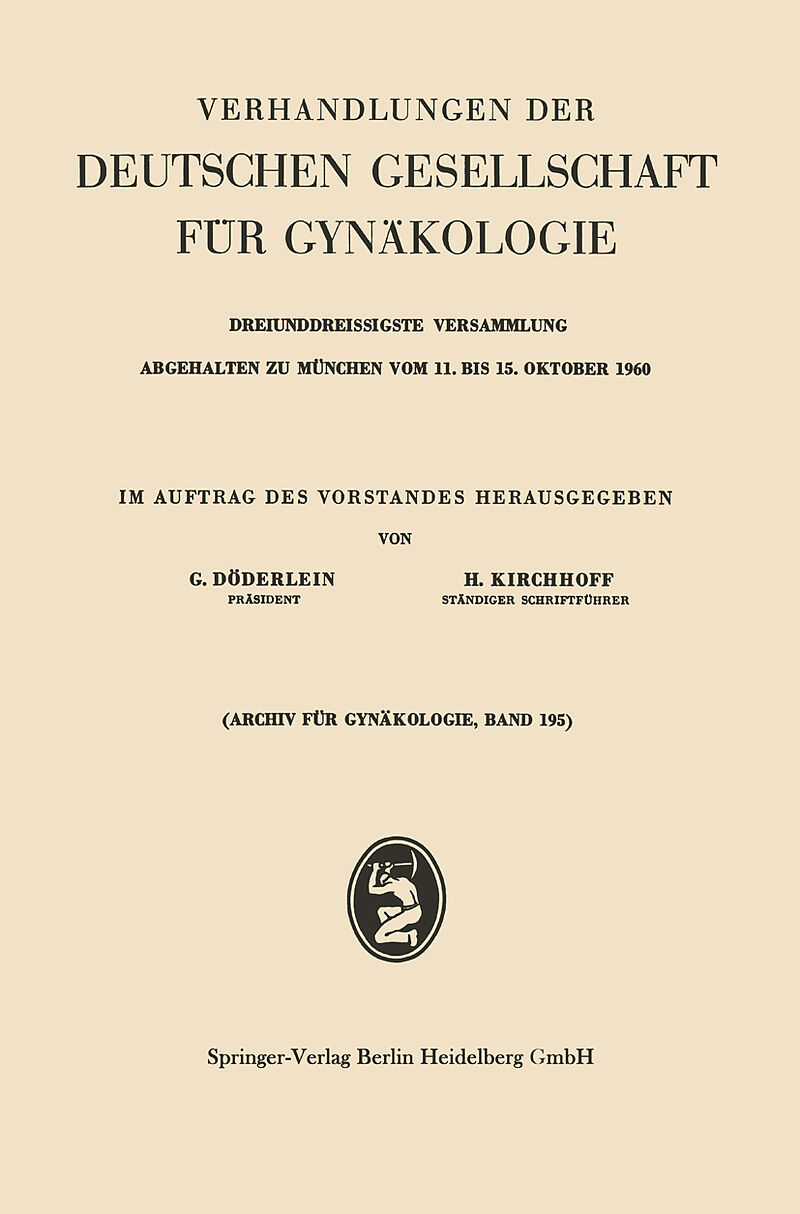 Eröffnungsansprache des Präsidenten der Gesellschaft.- a) Über Biologie und Bakteriologie des Scheidensekrets.- b) Das Scheidensekret. Morphologie, Cytologie, Cyclus.- c) Mykosen und Trichomonaden.- 1. Säureschwankungen und Bakteriologie des Scheidensekretes.- 2. Der Einfluß der Lactobacillus acidophilus-Keime auf die Vaginalflora.- 3. Bild und Bedeutung der im Vaginalabstrich erfaßbaren präovulatorischen Phase des Cyclus.- 4. Cervicale Zellelemente im Vaginalinhalt und ihre differentialdiagnostische Bedeutung in der cytologischen Abstrichbeurteilung.- 5. Kolposkopische und histologische Befunde an der Portio vaginalis uteri beim Trichomonadenbefall der Scheide.- 6. Kritische Bemerkungen zur Behandlung der Trichomonadenkolpitis.- 7. Diagnose und Therapie der Trichomoniasis bei Mann und Frau.- a) Physiologische und pathologische Involution und Klinik der Involution.- b) Postpartale Blutstillung.- c) Bakteriologie und Lochien.- 8. Die Bedeutung der isthmischen Kontraktionsdominanz für die formale Rückbildung des unteren Uterinsegments und der Portio nach der Entbindung.- 9. Ergebnisse der Thromboemboliebehandlung im Frühwochenbett.- 10. Über Anticoagulantienschäden nach Thrombosebehandlung im Frühwochenbett.- 11. Morbidität im Wochenbett.- a) Die Pathologie der Uterusmyome.- b) Klinik der Myome einschließlich Myom und Schwangerschaft.- c) Myoma uteri. Operative Behandlung.- d) Die Strahlentherapie des Myoms.- e) Medikamentöse Therapie der Myome.- 12. Konservative Myomoperation.- 13. 25 Jahre Myombehandlung an der Heidelberger Klinik.- 14. Fermenthistochemische Untersuchungen an Myomen.- 15. Neues zur Topographie der Uterusmyome.- 16. Metastase eines Chorionepithelioms in Myomknoten.- 17. Individuelle Indikation zur Art der Myomoperation.- 18. Über dieOperation von 1200 gutartigen Gebärmuttergeschwülsten, unter Berücksichtigung der Frage, ob man das Collum uteri belassen soll.- 19. Abdominale Totalexstirpation oder supravaginale Uterusamputation.- 20. Maligne Spätmetastasen eines benignen Myoms.- 21. Erfahrungen mit der konservativoperativen Behandlung des Myoma uteri.- 22. Entwickelt sich das Gebärmutterfibrom in der Menopause wirklich zu einer ungefährlichen Geschwulst ?.- 23. Wann darf man ohne nachteilige Folgen die Ovarien entfernen ?.- 24. Myome in Kombination mit malignen Erkrankungen des Uterus.- 25. Die Behandlung der Myomatosis uteri mit Äthinylnortestosteron und seinem Essigsäureester.- 26. Myoma uteri und Gravidität.- a) Moderne Anaesthesieverfahren in der operativen Geburtshilfe.- b) Moderne Anaesthesieverfahren in der operativen Gynäkologie.- 27. Unsere Erfahrungen mit verschiedenen Anaesthesieverfahren beim Kaiserschnitt.- 28. Die Placentapassage kurzwirkender Relaxantien.- 29. Kritische Bemerkungen zum Evipan als Durchtrittsnarkotikum.- 30. Die Anaesthesie bei der Beckenendlage.- 31. Anaesthesie im Greisenalter.- 32. Muskelrelaxantien und Mortalität.- a) Schwangeren-Vor- und -Fürsorge.- b) Die Schwangerschaftsanämien.- c) Die Bedeutung der Prophylaxe bei Diabetes und Schwangerschaft.- d) Die Bedeutung der Prophylaxe bei Blutungen und Geburtskomplikationen.- e) Bedeutung der Prophylaxe bei eklamptischem Symptomenkomplex.- f) Die Bedeutung der Augenhintergrundsveränderungen in der Schwangeren-Vor- und -Fürsorge.- g) Kropf- und Cariesverhütung in der Schwangerschaft.- 33. Teamwork bei Schwangerenberatung.- 34. Die vorbereitete Entbindung.- 35. Untersuchungen über Art und Umfang der Schwangerenbetreuung.- 36. Erfahrungen der nachgehenden WochenbettfürSorge.- 37. Kritik derSchwangerenprophylaxe im Rahmen der Statistik.- 38. Zur Pathogenese der toxischen Schwangerschaftsanämien.- 39. Anämiebehandlung mit Eisen und Folsäure (therapeutische Erfahrungen).- 40. Schwangerenfürsorge bei diabetischen Frauen.- 41. Untersuchungen zur Frage Prädiabetes und Schwangerschaft.- 42. Umfang der larvierten Sideropenie im Rahmen der Schwangerschafts-Vorsorgeuntersuchungen.- 43. Zur Prophylaxe nach diaplacentaren Infektionen.- 44. Die Bedeutung und Bewertung der Blutdruckerhöhung in der Schwangerschaft und unter der Geburt.- 45. Eklamptische Placentarveränderung und intrauteriner Fruchttod.- 46. Ursache und Bewertung der Urineisenausscheidung bei der Schwangerschaftstoxikose.- 47. Zur Therapie der Schwangerschaftsspätgestosen.- 48. Probleme der pränatalen Cariesprophylaxe.- 49. Der Anteil der durch bessere Schwangerenvorsorge vermeidbaren klinischen Geburtstodesfälle.- 50. Die Bedeutung der Prophylaxe bei Ikterus in und e graviditate.- 51. Schwangerenberatung und Rh-Faktor.- 52. Der Aufbau der Erythroblastose-Betreuung im Bezirk Dresden.- 53. Ergebnisse der Erythroblastose-Betreuung im Bezirk Dresden.- 54. Prognose fetaler Herztöne mittels Elektrophonokardiographie.- 55. Über den Wert der rectalen Untersuchung für die Diagnose des engen Beckens.- 56. Großer gangränöser Tumor des rechten Eierstockes im 8. Monat einer Zwillingsschwangerschaft mit hämorrhagischem Ascites bei einer an Mitralstenose leidenden Frau.- 57. Methodik und Ergebnisse der Perfusion normaler und übertragener menschlicher Placenten.- 58. Über die hypothalamische Ovarial-Insuffizienz (Diagnose, Therapie und Prognose).- 59. Das Serumeiweißbild nach vaginaler Radikaloperation.- 60. Der Einfluß der Geburtsdauer auf das frühe Wochenbett.- 61. Neue Gesichtspunkte zurGeburtsmechanik durch die Uterometrie.- a) Thoraxchirurgie bei Schwangeren.- b) Abdominalchirurgie in der Schwangerschaft.- c) Dringliche Chirurgie beim Neugeborenen.- 62. Darmverschluß und Schwangerschaft.- 63. Die Behandlung der Ovarialtumoren in der Schwangerschaft.- 64. Die chirurgisch-gynäkologischen Eingriffe während der Schwangerschaft an der Univ.-Frauenklinik Berlin.- 65. Magenkrebs während der Schwangerschaft.- 66. Zur Therapie des Ileus nach Kaiserschnitt.- Autorenverzeichnis.