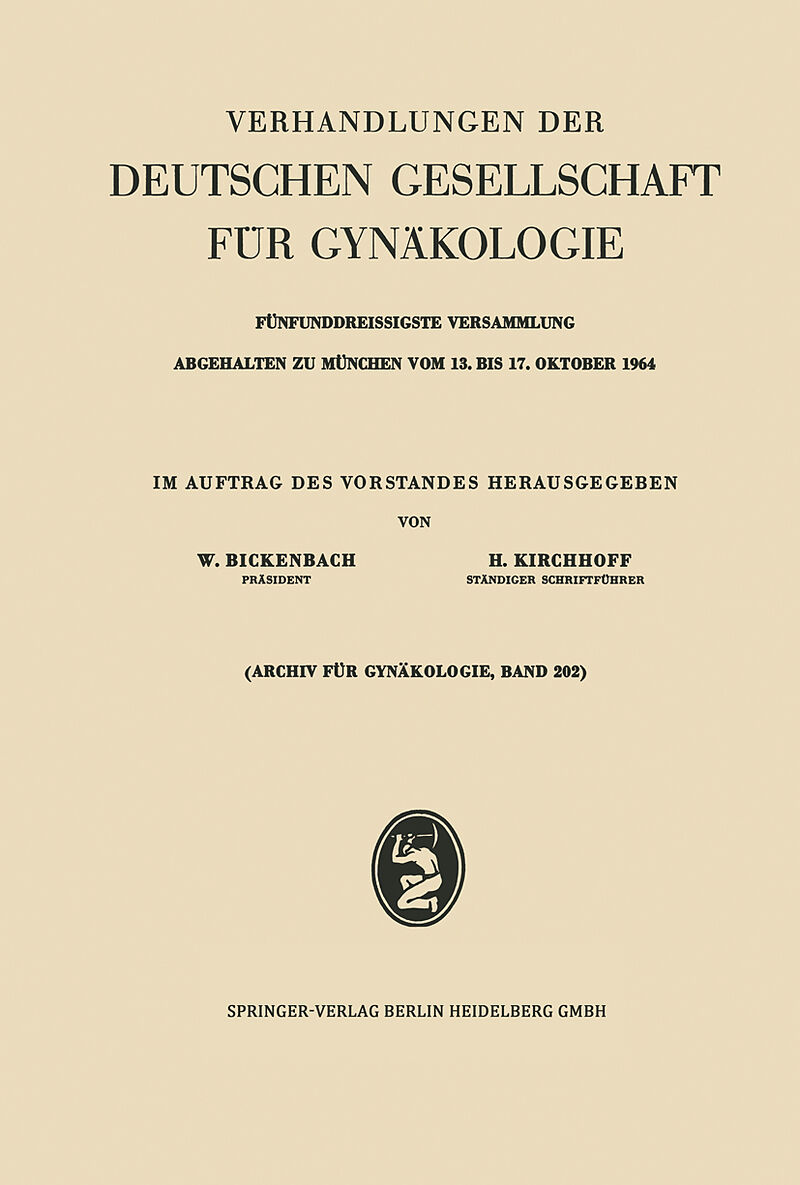 Der Uterusmuskel: Morphologie.- Erregungsphysiologie des Uterus.- Die contractilen Strukturen der Uterusmuskulatur und ihre Besonderheiten.- Die Uterusvergrößerung in der Schwangerschaft.- 1. Weitere Beobachtungen zum Aufbau der Uteruswand in der Schwangerschaft.- 2. Zur molekularen Struktur des Bindegewebes im menschlichen Uterus.- 3. Untersuchungen der muskulären und bindegewebigen Faserstruktur des Collum uteri.- 4. Histo-planimetrische Untersuchungen zu den graviditätsbedingten Wachstums- und Rückbildungserscheinungen der Uterusmuskulatur.- 5. Über die Wirkung synthetischer Gestagene auf den Uterusmuskel der Ratte in vitro.- 6. Quantitativer Vergleich zwischen Oxytocin und fünf verwandten neurohypophysären Peptiden am menschlichen Uterus in situ.- 7. Zur Ultrastruktur des bindegewebigen Anteils der Uterusmuskulatur.- Aussprachen zum Referat I/AD.- Zur Epidemiologie und Serologie der Toxoplasmose.- Toxoplasmose und Gestation.- 8. Zur Prophylaxe der konnatalen Toxoplasmose.- 9. Toxoplasmainfektion und Schwangerschaft. Ursache und möglicher Zeitpunkt einer Keimschädigung.- 10. Bemerkungen zur Frage des toxoplasmabedingten Abortus.- 11. Zusammenhänge zwischen mütterlicher Toxoplasmose und Embryopathie.- 12. Positive Toxoplasmoseteste der Mutter bei Schädigungen der Frucht.- 13. Untersuchungen über die teratogene Wirkung von Medikamenten zur Behandlung der Toxoplasmose während der Schwangerschaft.- 14. Die Brucellose bei Fehl- und Frühgeburten in Zentralbosnien.- Aussprachen zum Referat II/A und B und den Vorträgen 814.- Die Ovulation (Morphologie).- Die Ovulation, Physiologie und medikamentöse Auslösung.- Vorverlegung, Verzögerung und Hemmung der Ovulation.- 15. Nebenerscheinungen der ovulationshemmenden Präparate.- 16. Über den Einfluß vonFSH- und LH-Aktivität auf die Ovarialfunktion.- 17. Unsere Erfahrungen mit der Ovulationsauslösung durch Clomiphene.- 18. Erfahrungen mit medikamentöser Ovulationsauslösung.- 19. Test zur Stimulation der gonadotropen Funktion des Hypophysenvorderlappens mit Oxytocin.- 20. Die Hemmung der Ovulation durch Gestagene und ihre Bedeutung für die Schwangerschaftsverhütung.- 21. Spontane und artefizielle Cyclusverschiebungen.- 22. Kolposkopische, cytologische und histologische Portiobefunde bei ovulationshemmenden Medikamenten.- 23. Über die Funktion der Cervix bei Ovulationshemmung.- 24. Ovulationsunterdrückung als ethisches Problem.- Aussprachen zum Referat III/AC und den Vorträgen 1224.- 25. Enzym-Muster des Follikels vor der Ovulation und des Corpus luteum.- 26. Enzymuntersuchungen im Liquor folliculi.- 27. Biochemische Untersuchungen zum Wirkungsmechanismus von Gonadotropinen und Oestrogenen.- 28. Gesamtgonadotropin, follikelstimulierende und luteinisierende Aktivität des hypophysären Human-Gonadotropin.- 29. Zur immunologischen Bestimmung hypophysärer Gonadotropine.- 30. Prolactin-Gehalt im Serum vor und nach der Ovulation gemessen am Taubenkropftest.- 31. Hormonanalytische Untersuchungen über die Ovarialstimulierung bei abgestufter HMG-HCG Dosierung.- 32. Hormonausscheidungen unter und nach Langzeitbehandlung mit ovulationshemmenden Oestrogen-Gestagenkombinationen.- 33. Autoradiographische Untersuchungen der DNS-RNS- und Protein-Synthese im menschlichen Endometrium in Abhängigkeit von der Ovulation.- 34. Endometriumbefunde bei den Ovulationshemmern.- 35. Elektronenmikroskopische Endometriumbefunde nach Behandlung mit ovulationshemmenden Stoffen.- 36. Über Reservesubstanzen und nutritive Beziehungen der Säugereizelle während der Blastogenese.- 37.Phaseneinfluß operationsbedingter gonadotroper Funktionsänderungen auf Ovar und Uterus.- Aussprachen zu den Vorträgen 2537.- Ergebnisse der Supervolttherapie in der Gynäkologie.- Dosimetrie.- Die Zukunft der Strahlentherapie in der Behandlung des Collumcarcinoms.- 38. Erfahrungen des Radiumhemmet in Stockholm mit Hochvolttherapie beim Collumcarcinom.- 39. Supervolttherapie in der Gynäkologie.- 40. Die Koordination von Radium- und Supervolttherapie.- 41. Dosimetrische Probleme bei der kombinierten Radium- und Telekobaltbestrahlung.- 42. Die lymphographische Kontrolle der Supervolttherapie des Genitalcarcinoms.- 43. Dosisdirektmessungen im Ureter bei der Telekobalttherapie des Collum-Carcinoms.- 44. Ergebnisse der cytologischen Punktionsdiagnostik fraglich carcinomatöser Resistenzen speziell im Parametrium.- Aussprachen zum Referat IV und den Vorträgen 3844.- 45. Intrauterine Fetal Distress.- 46. Perinatale Hypoxie und Blutgerinnung.- 47. Untersuchungen sub partu und am Neugeborenen.- 48. Untersuchungen zum Sauerstoffpartialdruck im fetalen Blut während der Geburt.- 49. Ursachen der tödlichen intrauterinen Asphyxie.- 50. Fetale Herzschlagfrequenz und intrauterine Hypoxie.- 51. Untersuchungen zur Entstehung der Acidose bei Neugeborenen.- 52. Die intrauterine Leichenstarre bei Fruchttod infolge Anoxie.- 53. Placentarödem in der Toxämie.- 54. Die Ursachen der perinatalen Hypoxie. Klinische und pathomorphologische Untersuchung.- Podiumgespräch über perinatale Hypoxie und Acidose.- 55. Untersuchungen zur Verhinderung der Rh-Sensibilisierung unter der Geburt.- 56. Die offene Behandlung der Recto-Vaginal-Fistel.- 57. Die Pull through-Methode bei der Heilung von großen vagino-rectalen Fisteln.- 58. Ergebnisse des Kolloquiums über aktuelle Fragen derHämostaseologie in der Geburtshilfe und Frauenheilkunde.- 59. Über das Verhalten von Tumorzellen des weiblichen Genitales in der Gewebekultur und deren Austestung gegenüber den neueren Cytostatica. Autoreferat.- 60. Die Therapie des Ovarialcarcinoms mit Cytostatica.- Aussprachen zu den Hauptvorträgen Nr. 5560.- 61. Erfahrungen mit der erweiterten hypogastrischen Sympathektomie.- 62. Veränderungen der Portio uteri bei kurz dauernder Vakuumeinwirkung.- 63. Eine einfachere weniger traumatische Hysterektomie für nichtmaligne Fälle.- 64. Flugreise und Schwangerschaft.- 65. Erfahrungen mit einem neuen 2½ min Schwangerscha