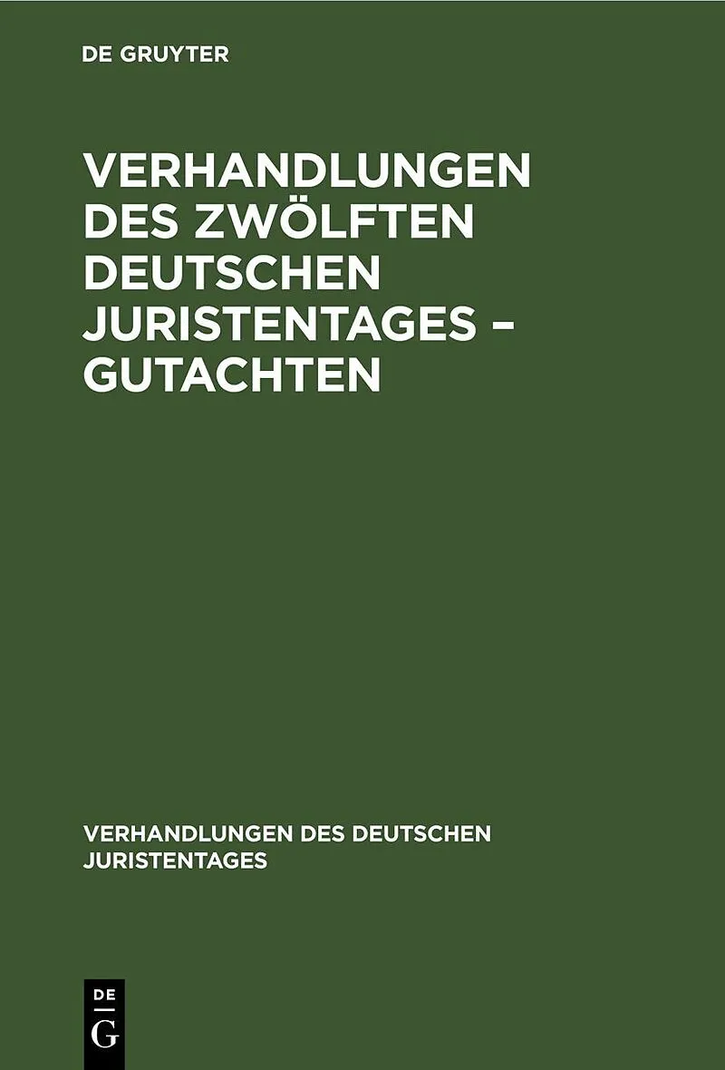 Keine ausführliche Beschreibung für "Verhandlungen des Zwölften Deutschen Juristentages - Gutachten" verfügbar. Frontmatter -- Inhaltsverzeichniß -- I. Gutachten über die Gesetzgebungsfrage: 1. Soll die Obervormundschaft, soweit sie dem Staate oblieg...