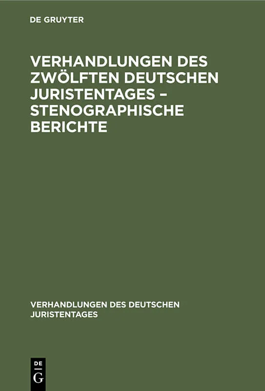 Keine ausführliche Beschreibung für "Verhandlungen des Zwölften Deutschen Juristentages - Stenographische Berichte" verfügbar. Frontmatter -- Inhaltsverzeichniß -- I. Verzeichniß der Mitglieder der ständigen Deputation. 1874 75 -- II. Statut des Deut...