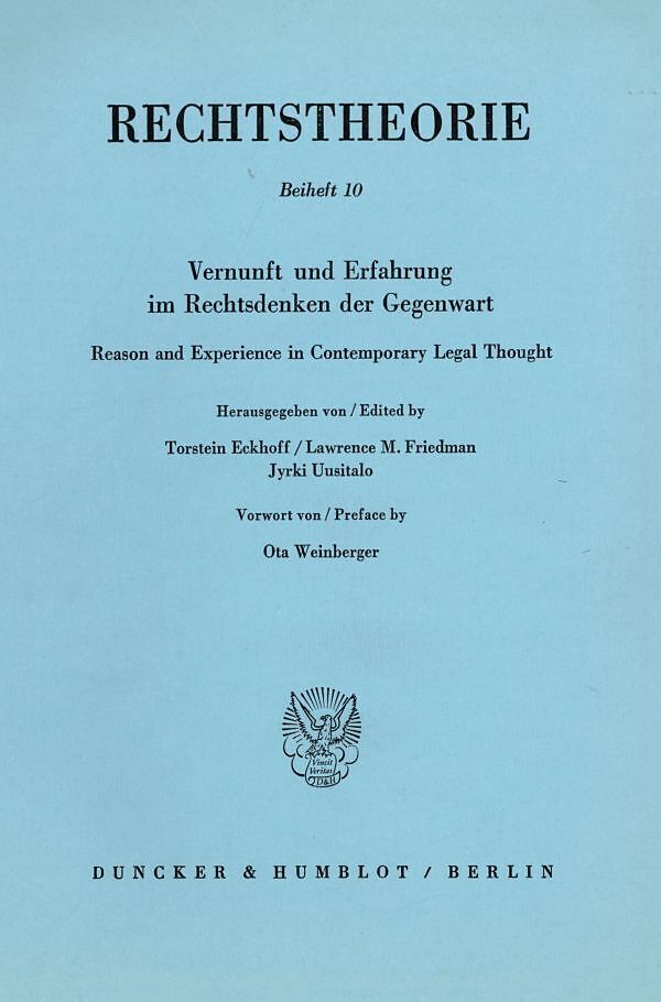 Inhalt Inhalt: C. J. Bax, Two Functions of Legal Reasoning - H. J. M. Boukema, »Is and Ought« as a Linguistic Problem - J. M. van Dunné, The Role of Personal Values in Legal Reasoning - E. Flower, Experience and Legal Reasoning - D. J. Galligan, Arbitrariness,...