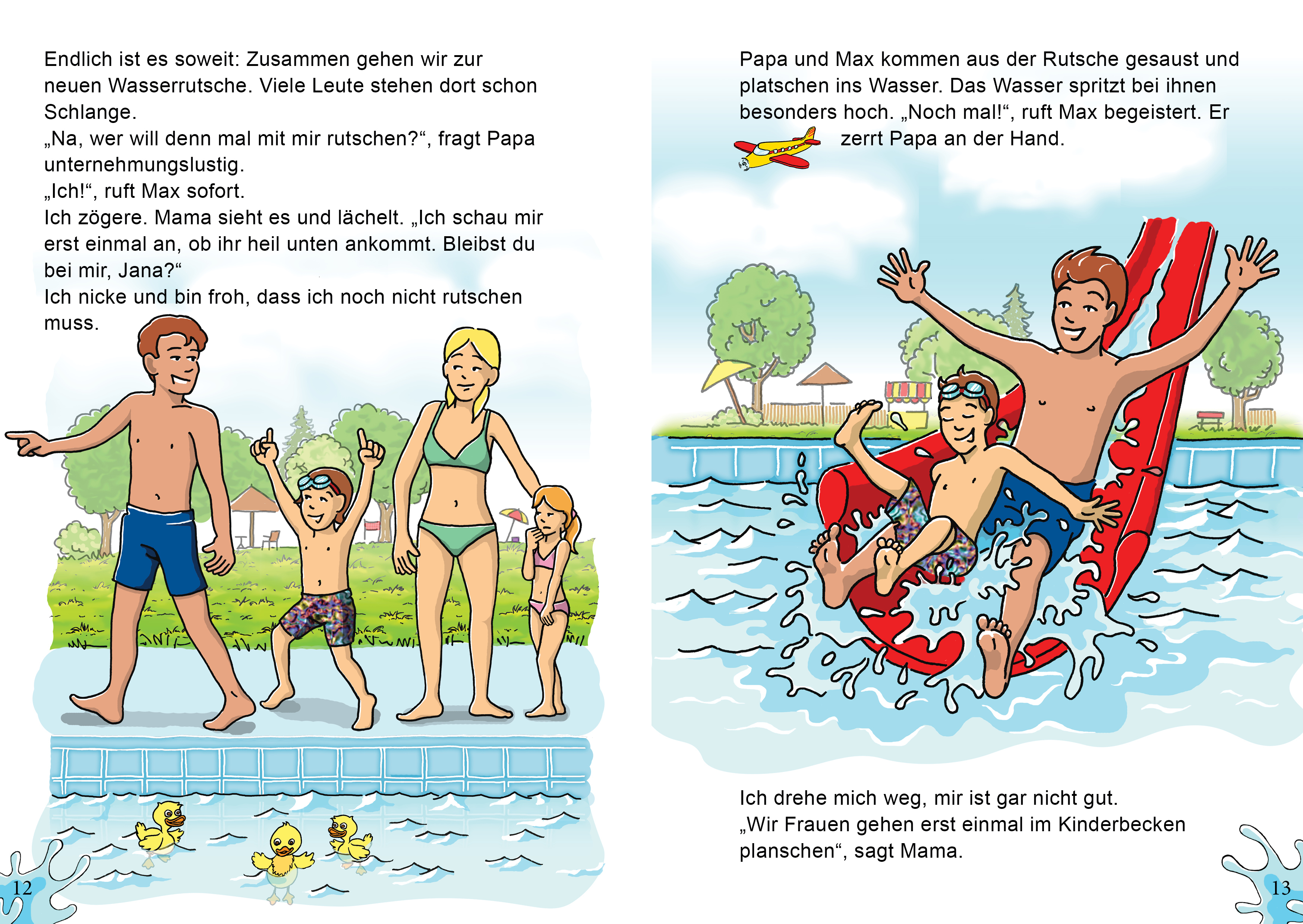 Endlich hat Jana das Seepferdchen! Natürlich möchte sie jetzt so oft wie möglich schwimmen gehen am liebsten zusammen mit Ben, der mit ihr in die erste Klasse geht. Denn er hat schon das Gold-Abzeichen und kann ihr bestimmt eine Menge beibringen. In der Schwim...