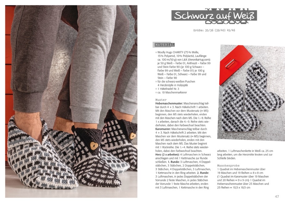 Ein paar einfache Häkelquadrate und die richtigen Anleitungen: Schon ist die ganze Familie mit den perfekten Puschen ausgestattet. Ob frühlich-bunt oder Ton in Ton, ob süßes Babyschühchen oder Riesenschlappen, ob pur oder ergänzt mit Details diese Hausschuhe s...