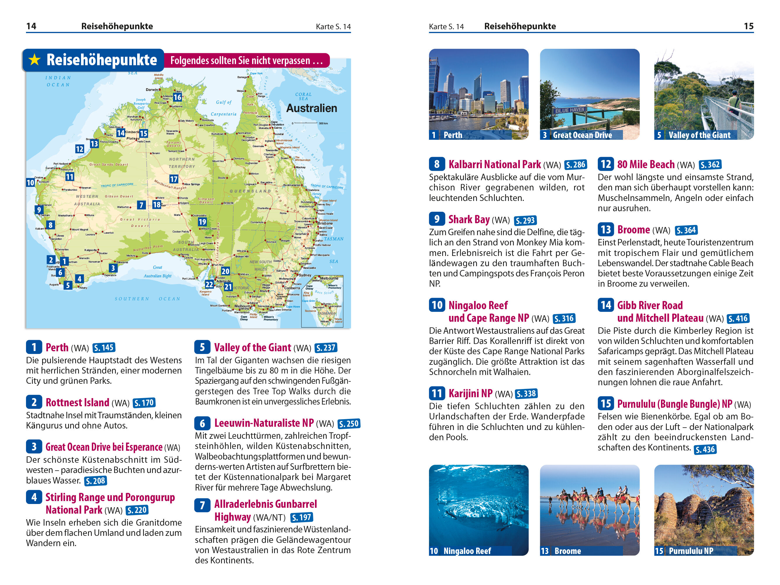 Entdecken und erleben: Die schönsten Routen durch Western Australia, Northern Territory und South Australia. Städte und Orte mit allen wichtigen Sehenswürdigkeiten. Ausführliche Kapitel zum Anmieten von Pkw und Campmobile. Infos für Bus- und Bahnfahrer.Nation...