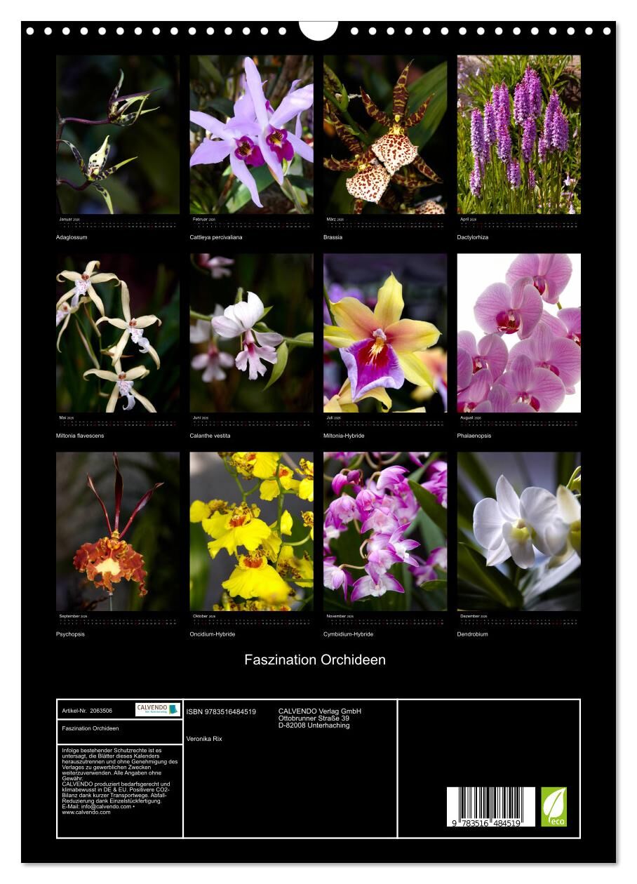 Der Kalender für den Orchideen-Liebhaber. Tauchen Sie ein in die einzigartige Schönheit und Vielfalt der Orchideenblüten. Erleben Sie die fantastische Farb- und Formenvielfalt der unterschiedlichsten Sorten und bewundern Sie die natürliche Schönheit der filigr...