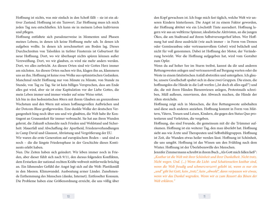 Veronika Smoor schreibt gegen den allgegenwärtigen Blues an und erzählt Geschichten, durch die Hoffnung leuchtet und die zum Hoffen anstiften, denn: "Zur Hoffnung muss du dich entschließen, du kannst sie in deinem Leben kultivieren und pflegen." Wo man auch hi...
